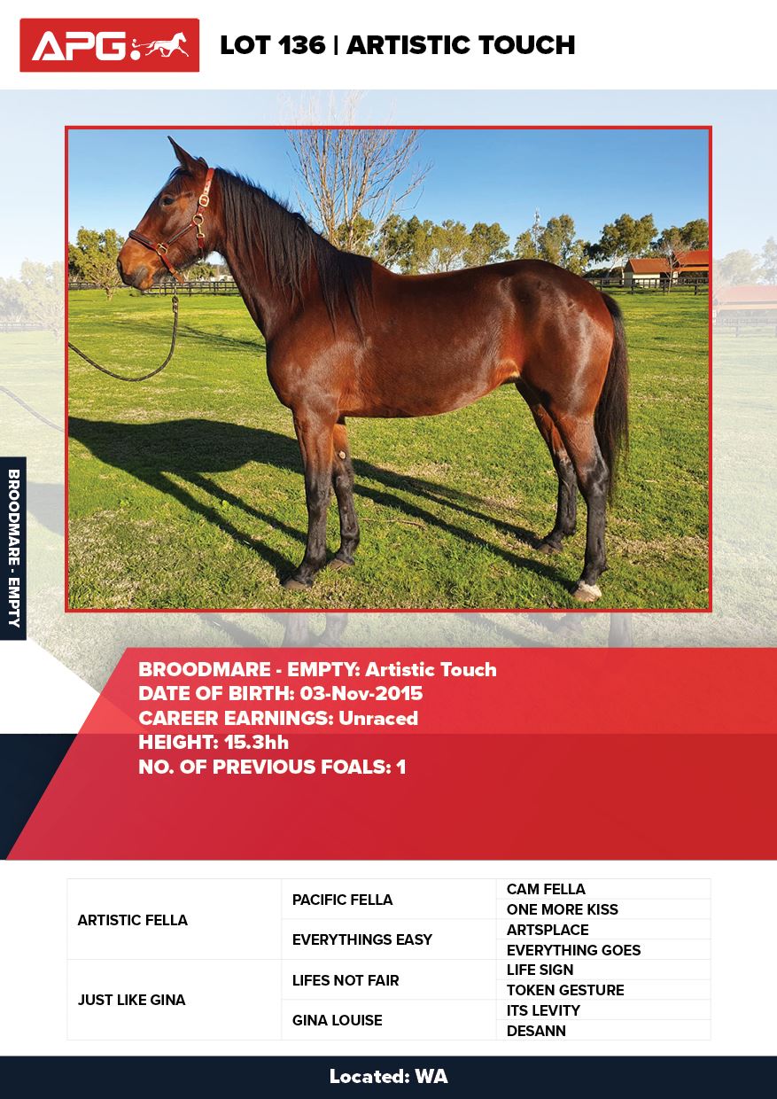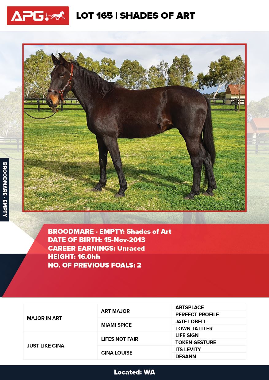 | Mare | Shades of Art | Major In Art USA | Just Like Gina | Allwood Stud | WA |