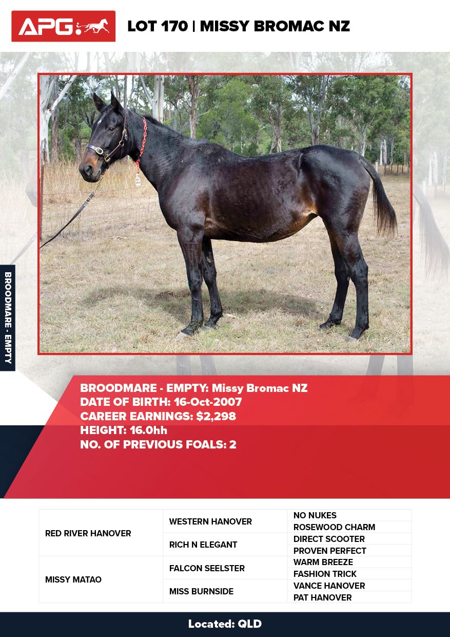 | Mare | Missy Bromac NZ | Red River Hanover USA | Missy Matao NZ | Brisbane Pastoral | QLD |