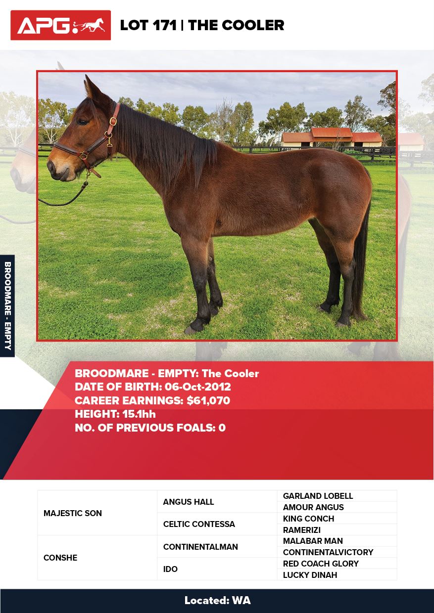 | Mare | The Cooler | Majestic Son CA | Conshe | Allwood Stud | WA |