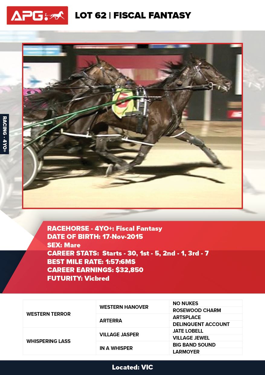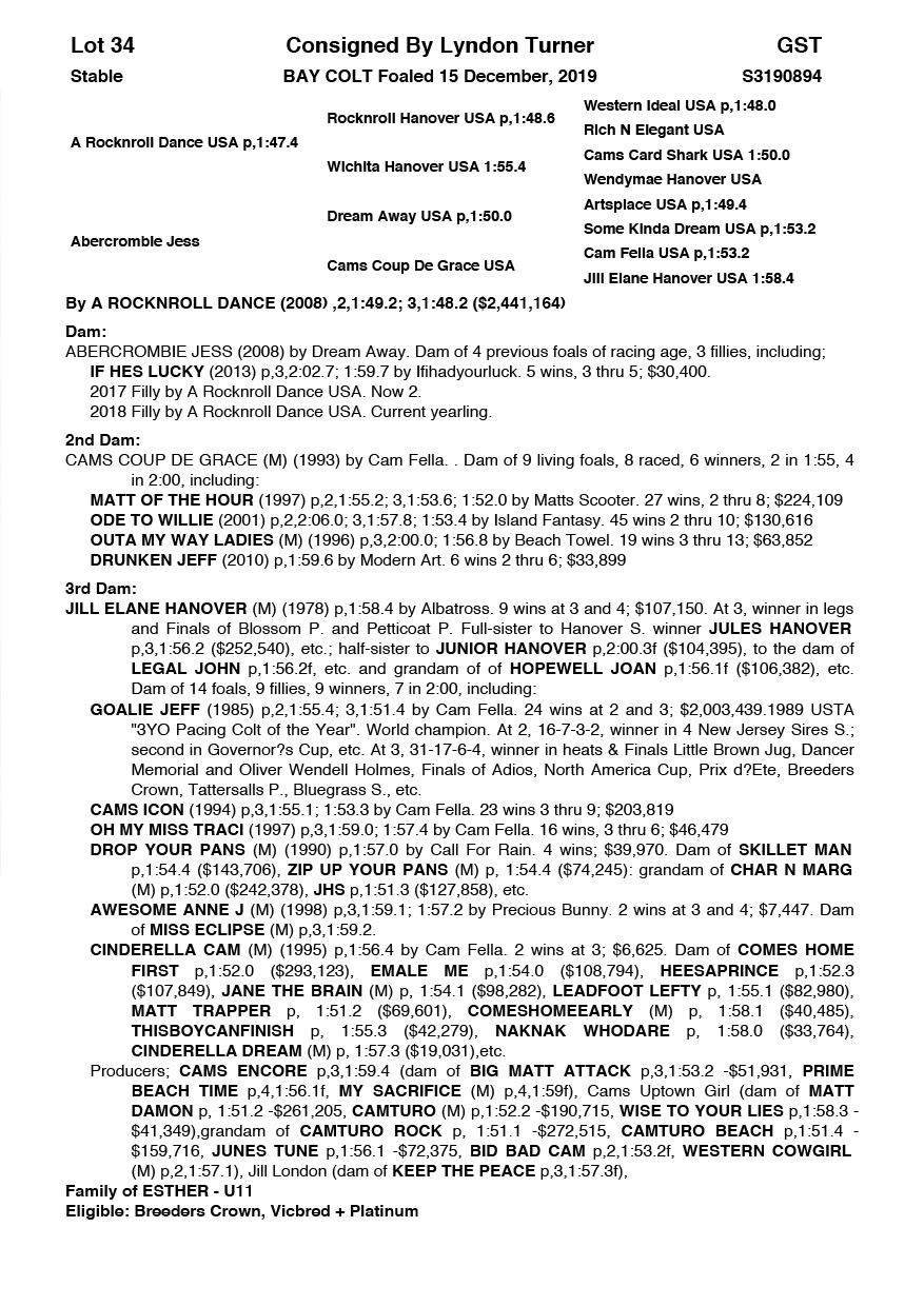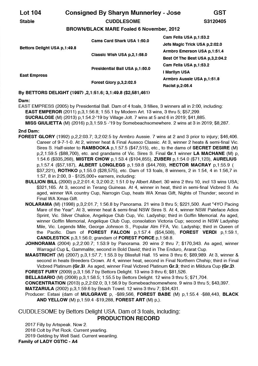 | Mare | Jacinta Mae | Bettors Delight USA | Foxy Cleo | Steve Johnson | WA | Equine Reproduction Services & Clients | $1,000 |