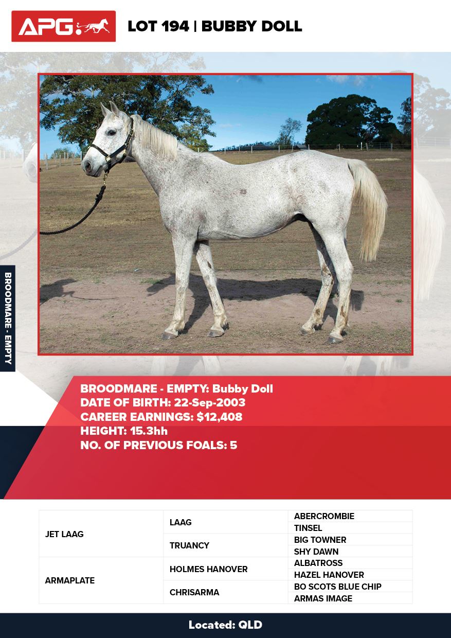 | Mare | Bubby Doll | Jet Laag USA | Armaplate | Brisbane Pastoral | QLD |