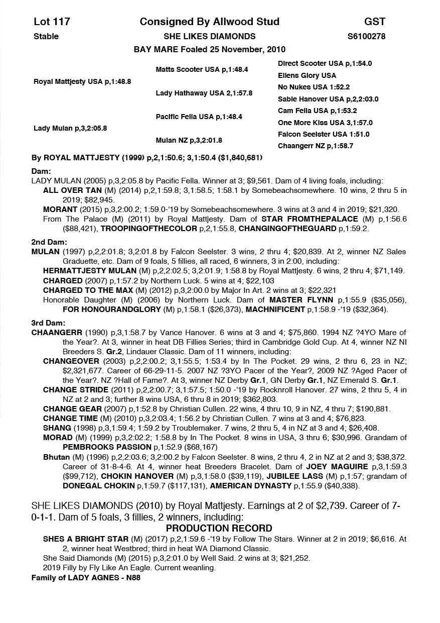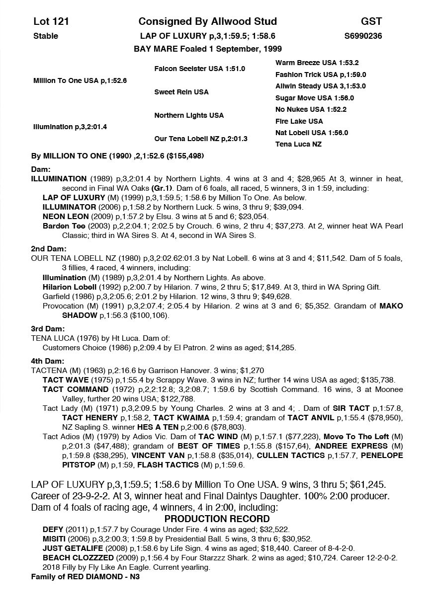 | Mare | Perfezione | Life Sign USA | Perfect Memory | Celestial Standardbreds | NSW | E & R Basham | $7,000 |