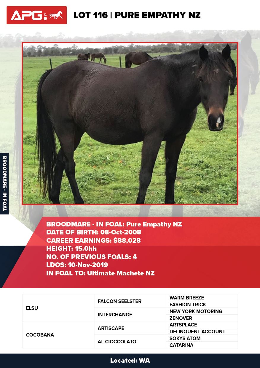 | Mare | Beauteous Maximus | Bettors Delight USA | Valdivieso | Allwood Stud | WA |