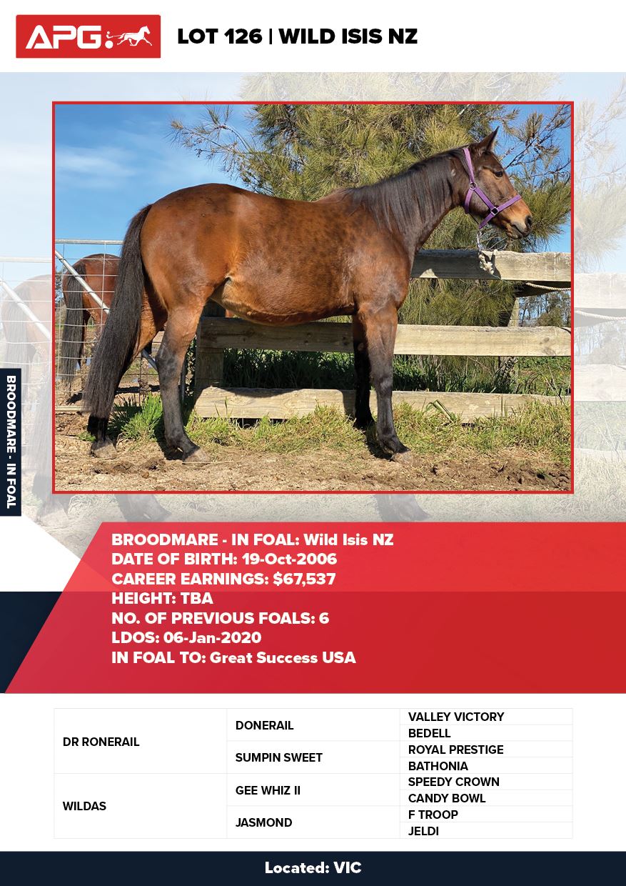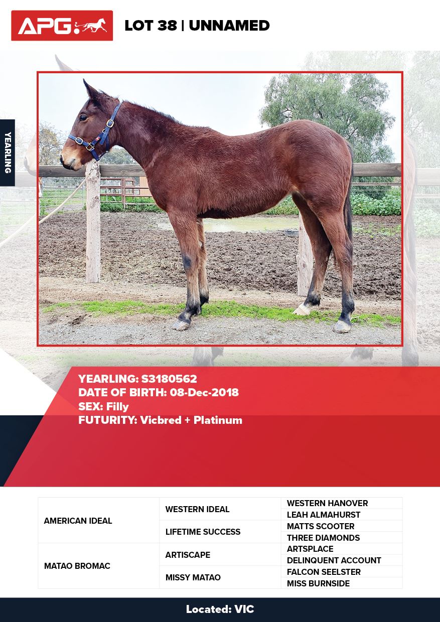 | American Ideal USA | Matao Bromac NZ | Dunroamin Standardbreds | VIC | Rosemary Basham | $8,500 |
