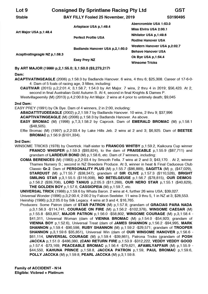 | Art Major USA | Acaptivatingeagle NZ | Sprintlane Racing Pty Ltd | VIC | Apg As Agent | $8,500 |