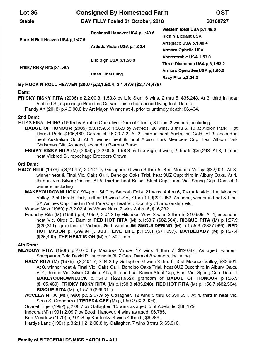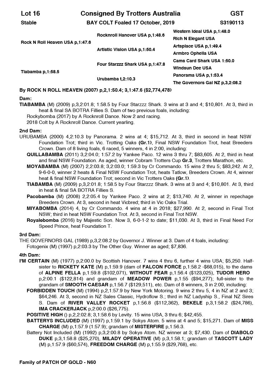 | Rock N Roll Heaven USA | Tiabamba | Trotters Australia | VIC |