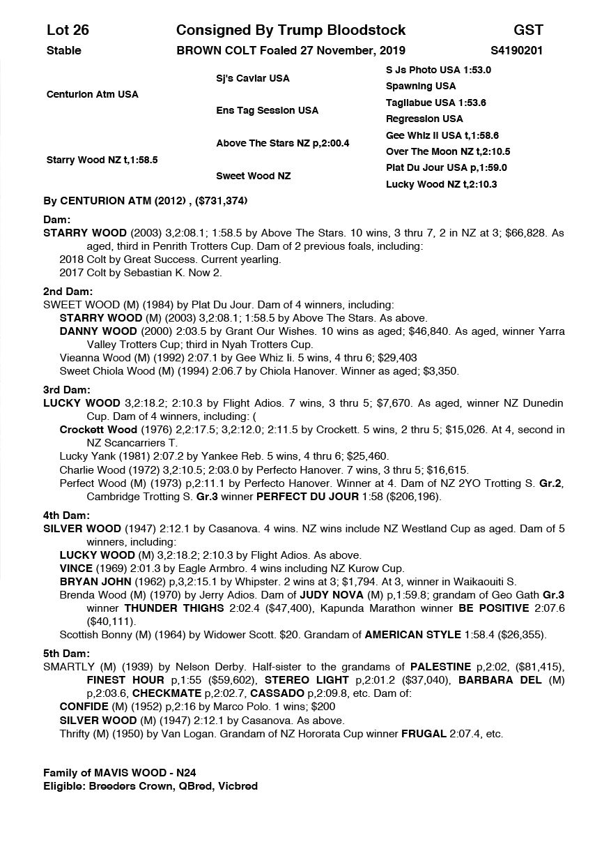 | Centurion Atm USA | Starry Wood NZ | Trump Bloodstock | QLD |