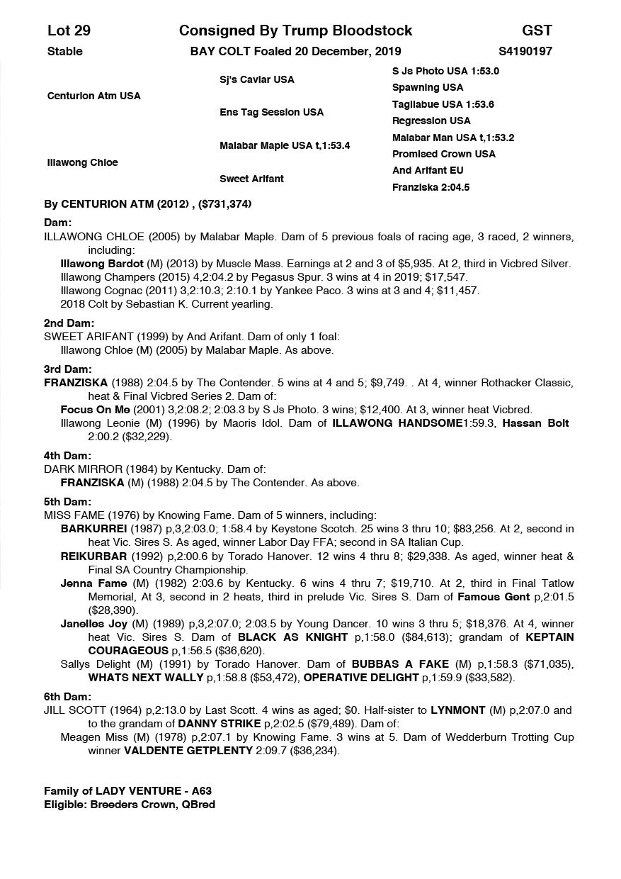 | Centurion Atm USA | Joyces Image | Trump Bloodstock | QLD | Lj & Me Vagg | $5,000 |