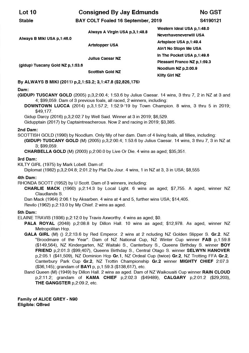 | Mare | Gidup Tuscany Gold NZ | Julius Caesar NZ | Scottish Gold (NZ) | John Edmunds & Partners | QLD |