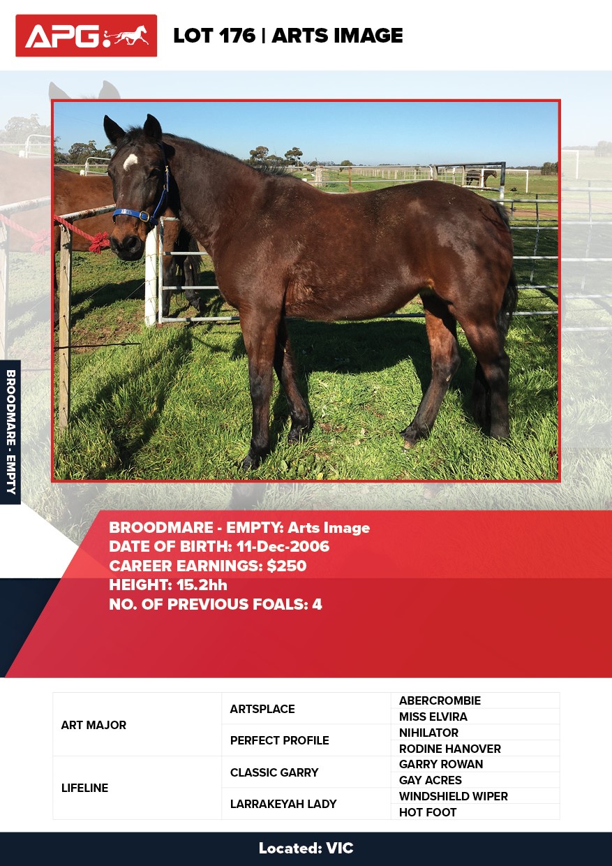 | Mare | Arts Image | Art Major USA | Lifeline | Peter Gleeson | VIC | Sc Bloodstock Pty Ltd | $4,000 |