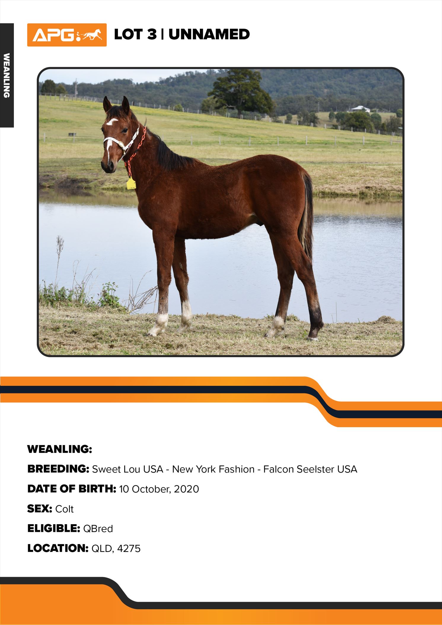 | Colt | Chicago Bart | Sweet Lou USA | New York Fashion | Traxion Management Services | QLD, 4275 | APG As Agent | $18,000 |