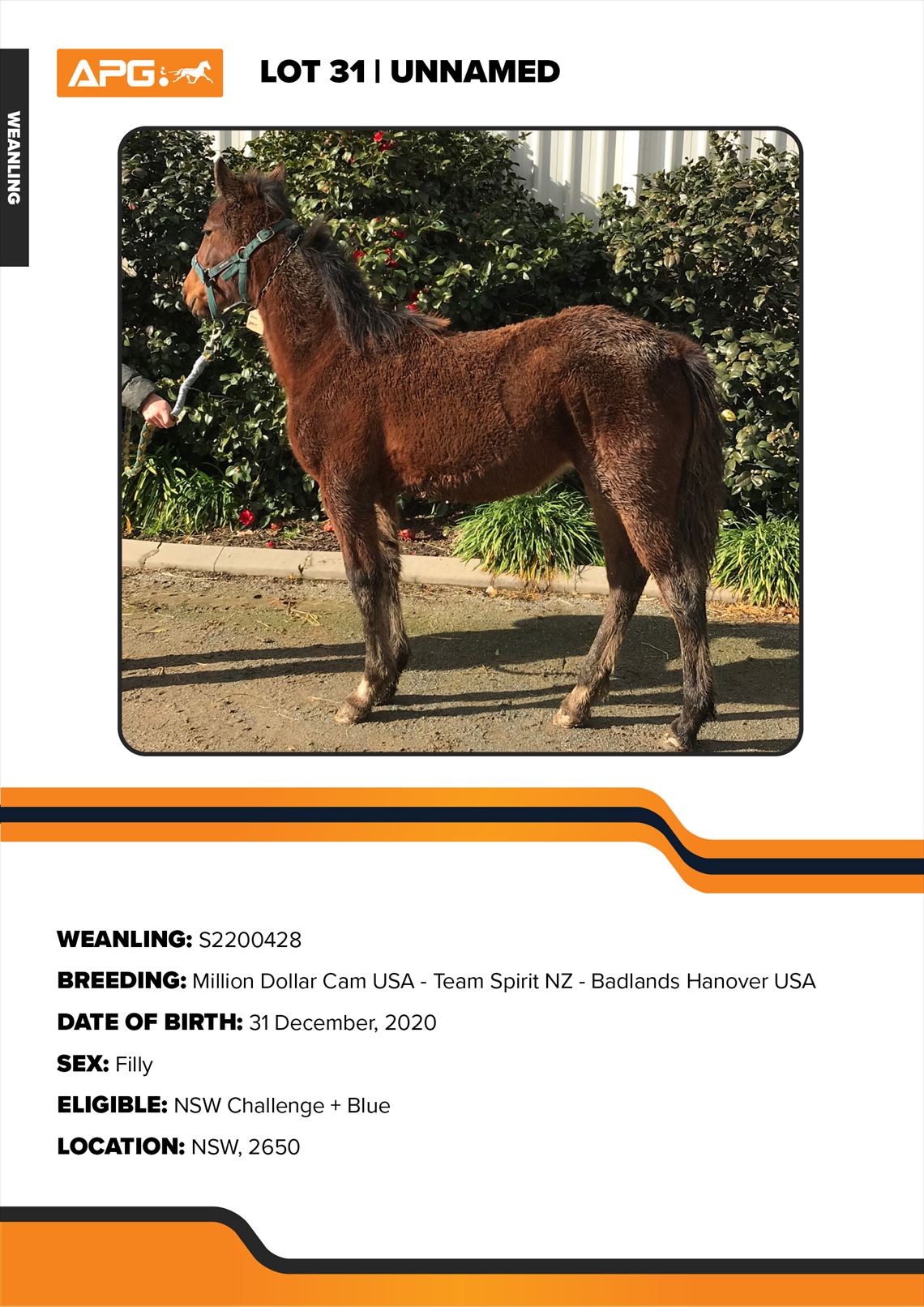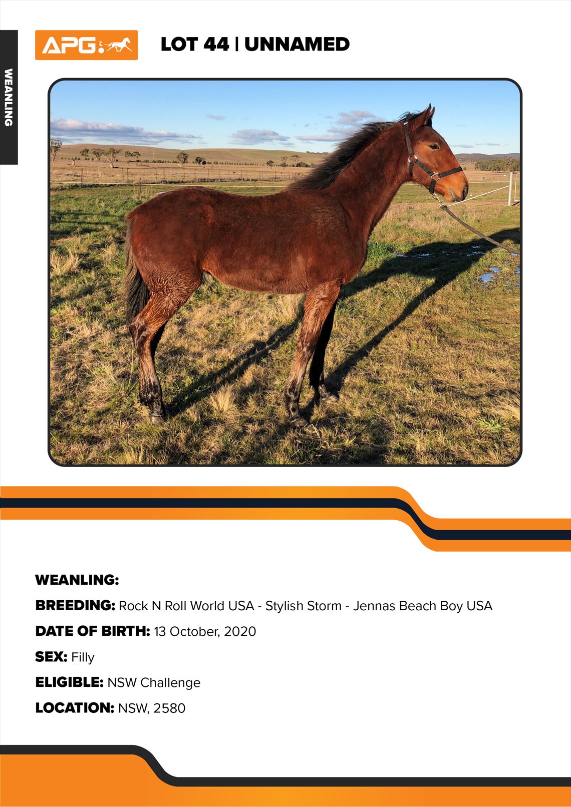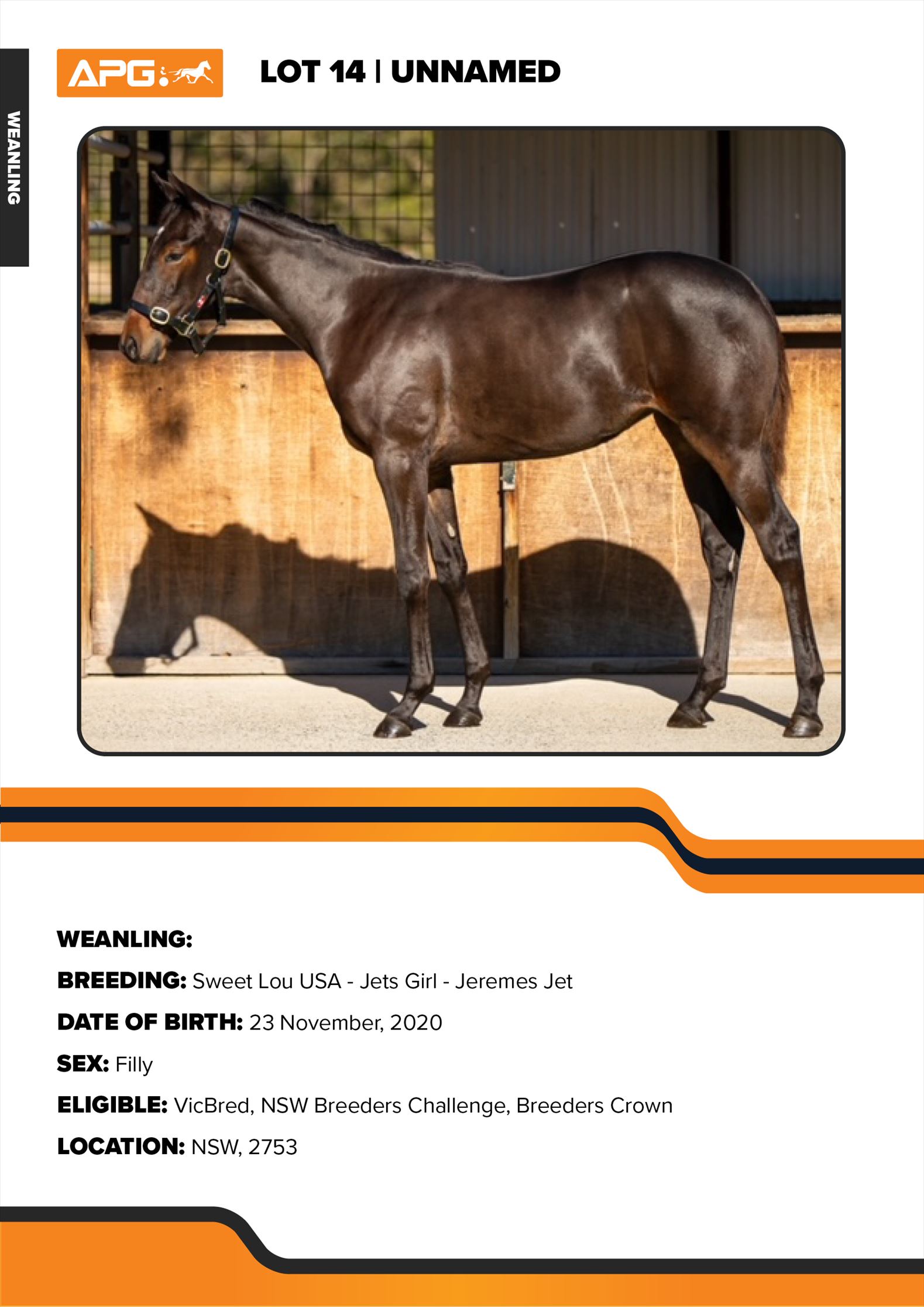 | Filly | Starshine Lady | Sweet Lou USA | Jets Girl | Michelle Wardle | NSW, 2753 | Russell Campbell | $13,000 |