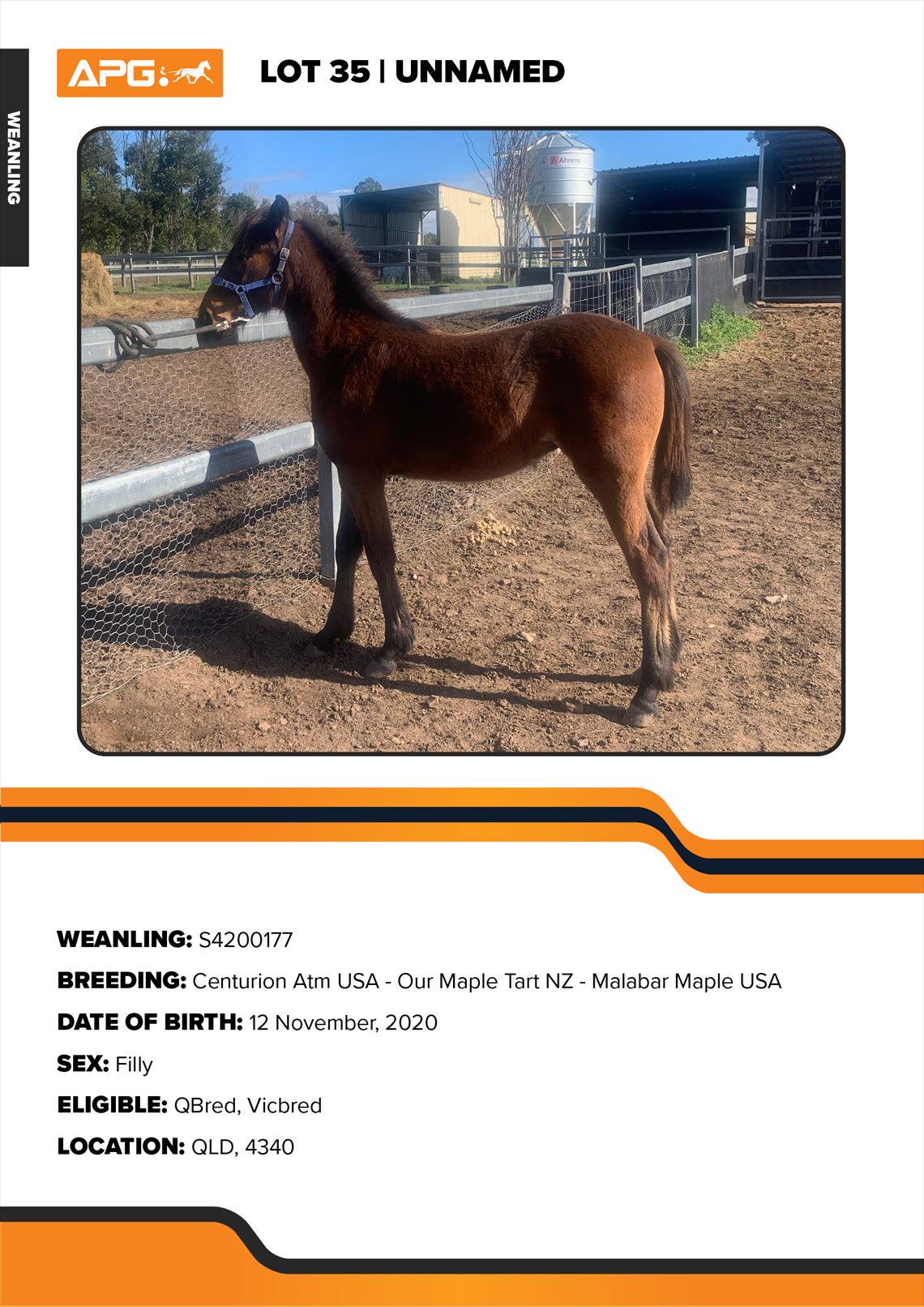 | Centurion ATM USA | Our Maple Tart NZ | Trump Bloodstock Pty Ltd | QLD, 4340 | Garrard, Gayle | $2,500 |