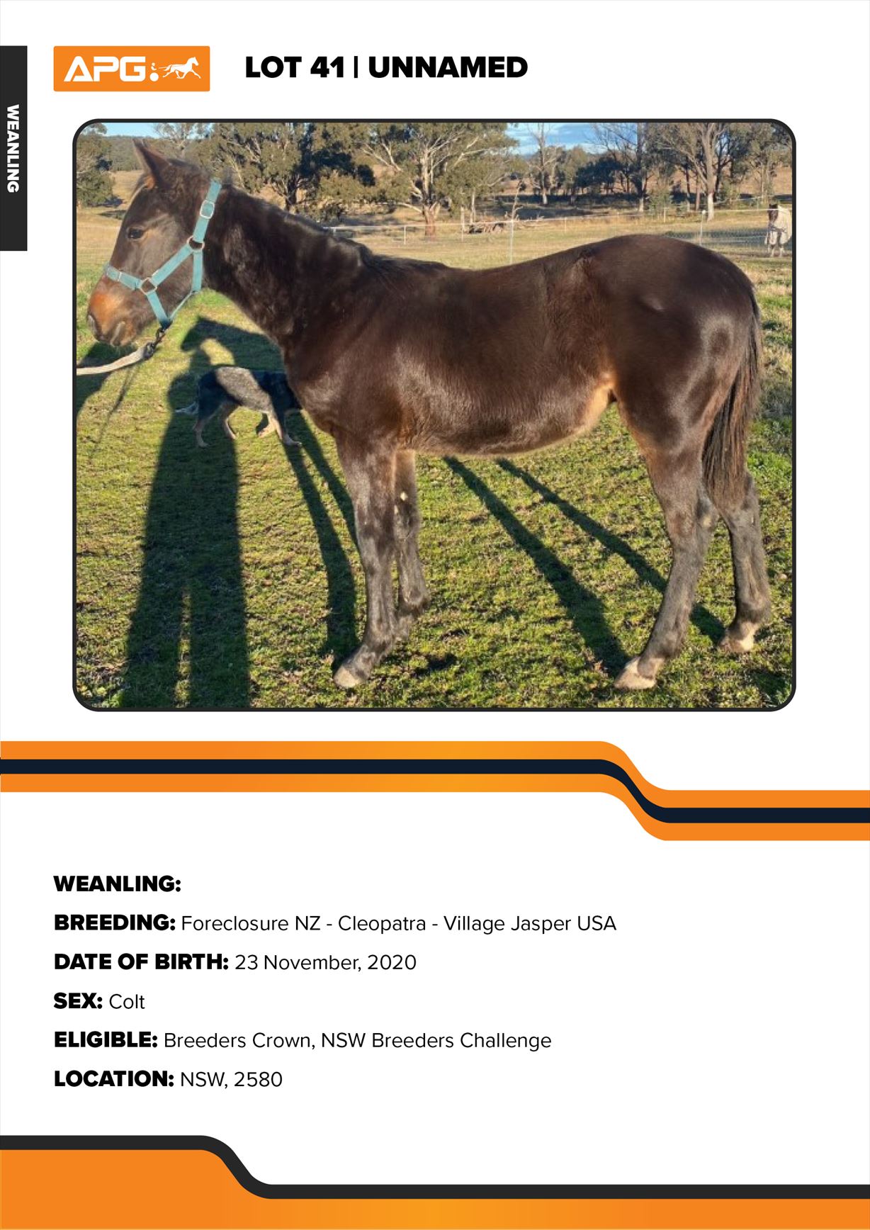 | Foreclosure (NZ) | Cleopatra | Kirsty Day | NSW, 2580 | Robert Caton | $6,000 |