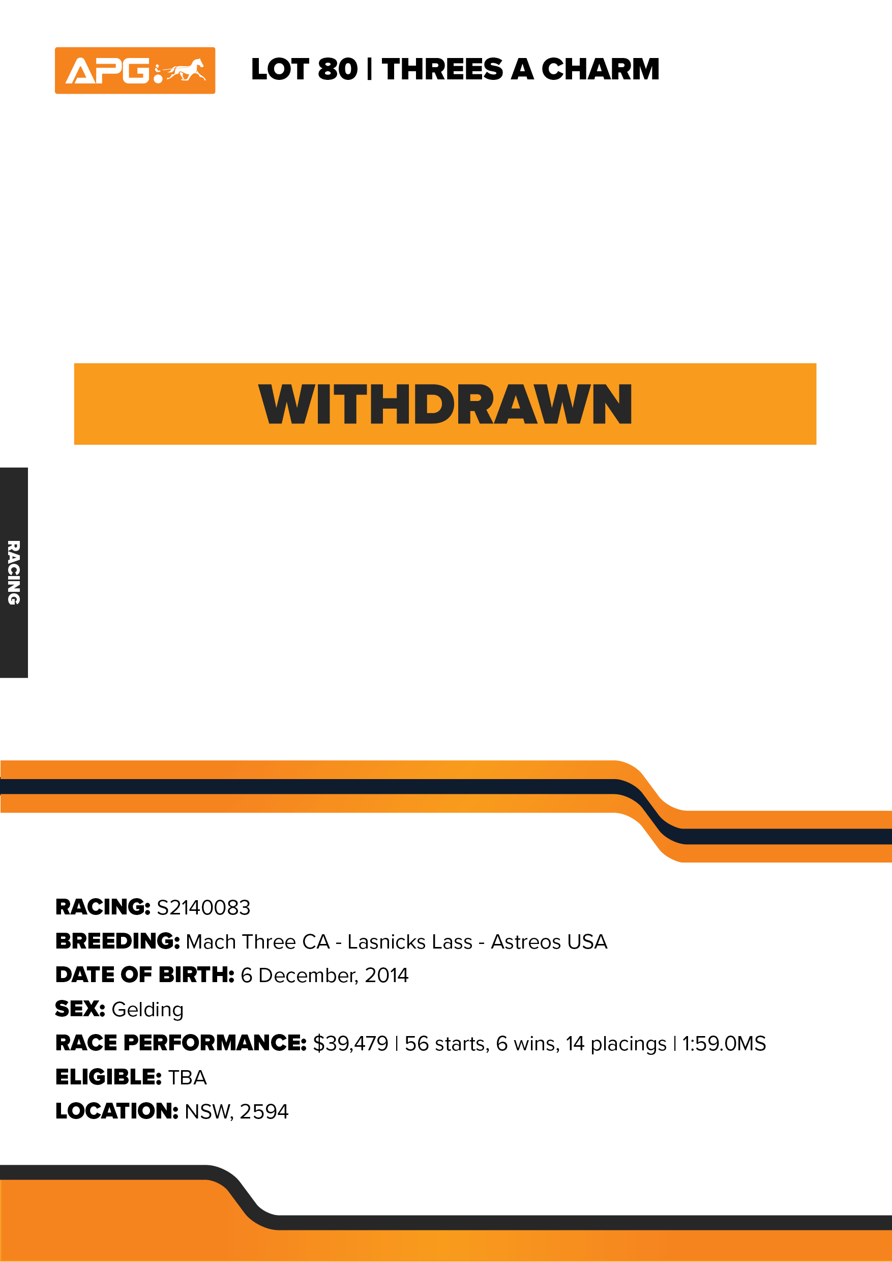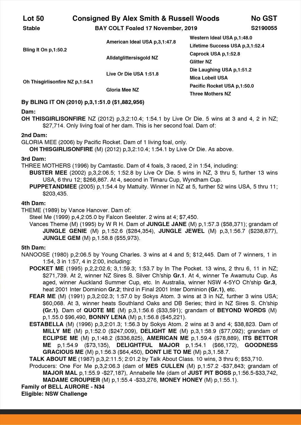 | Vincent | Oh Thisgirlisonfire NZ | Alex Smith and Russell Woods | NSW, 2594 | Lynette Freeman | $3,250 |