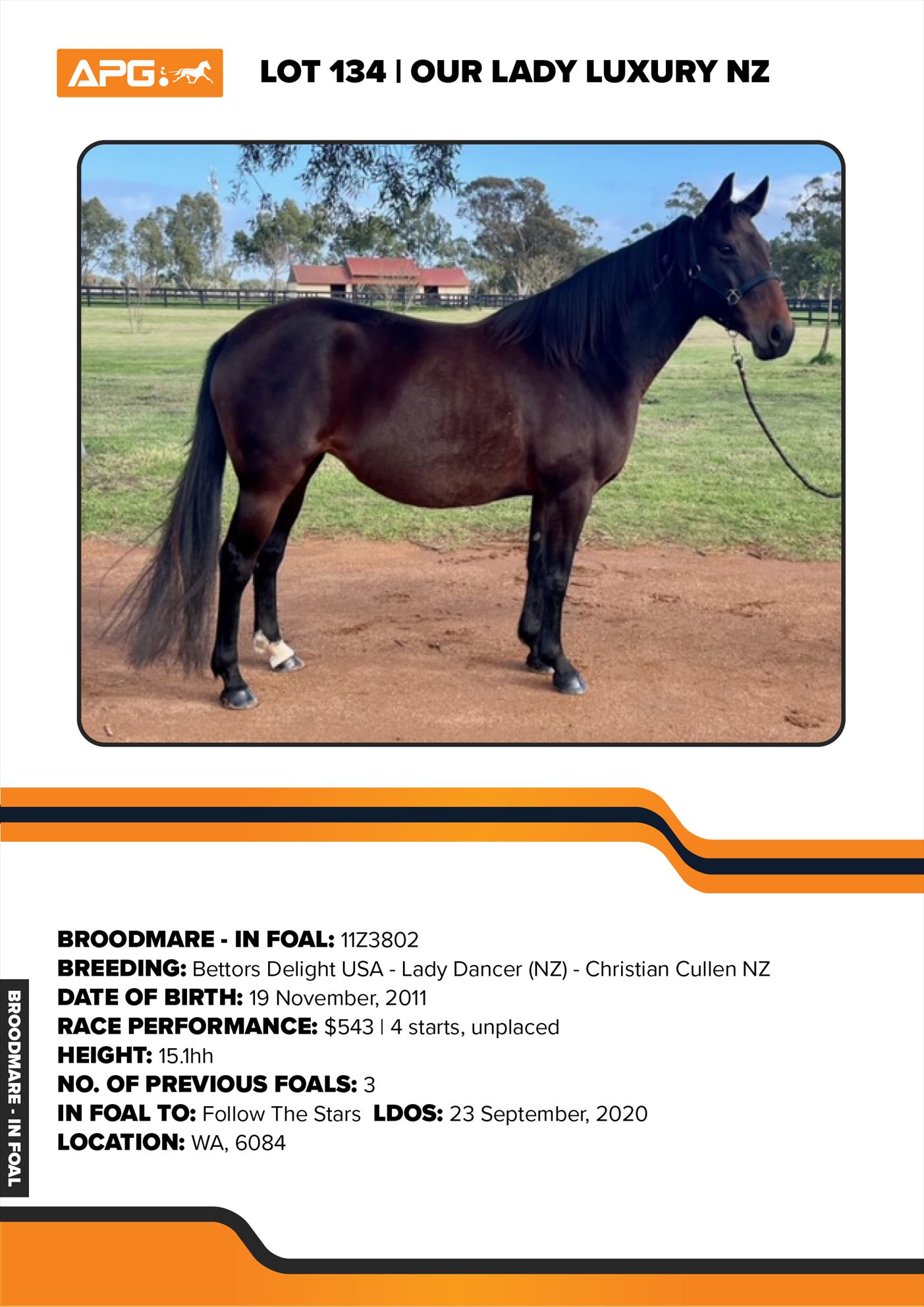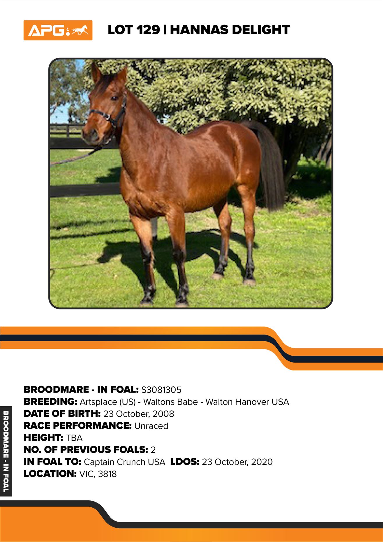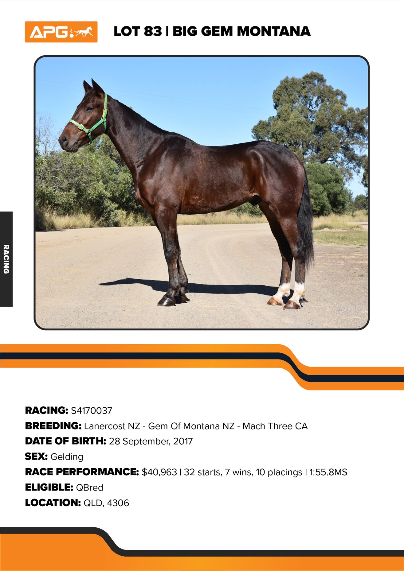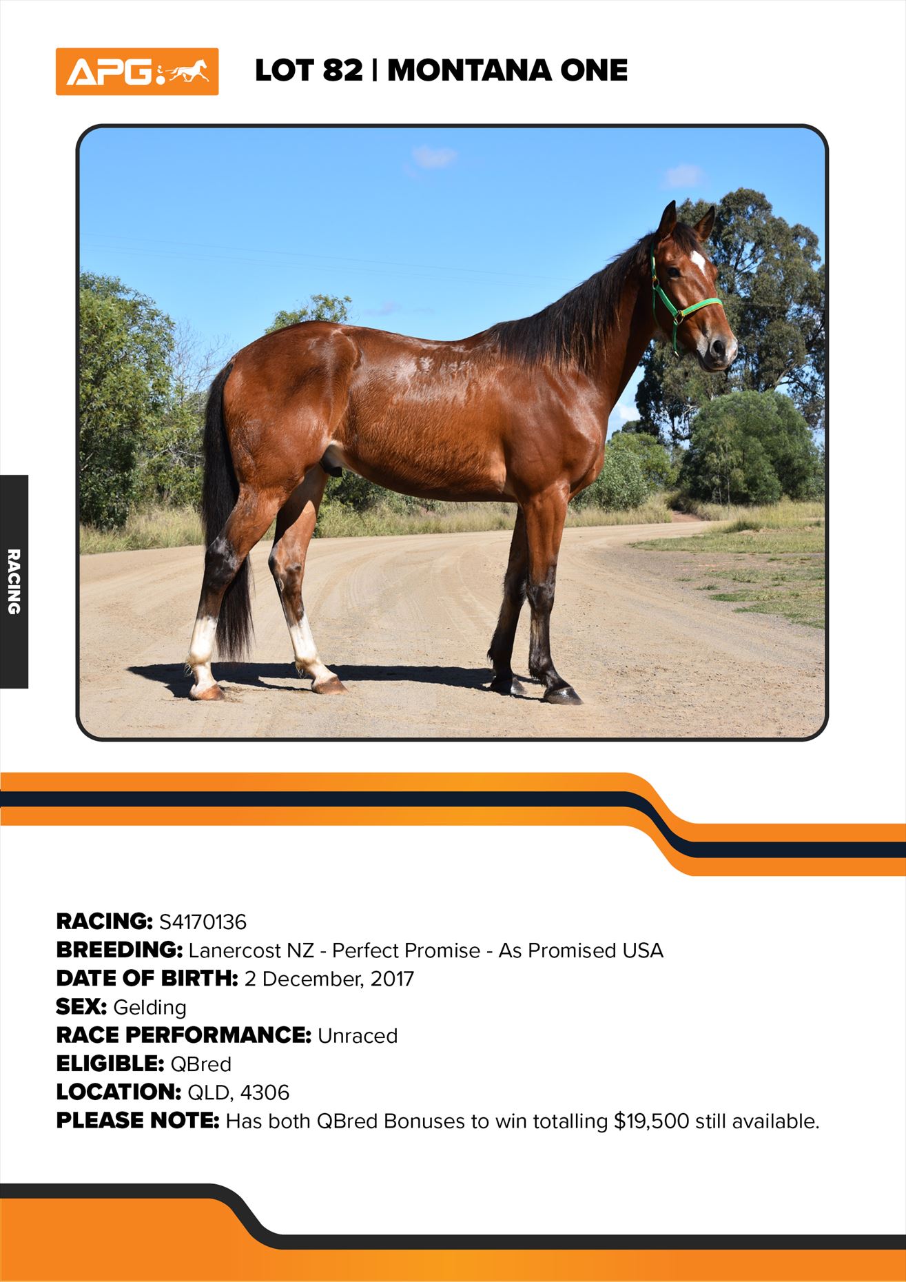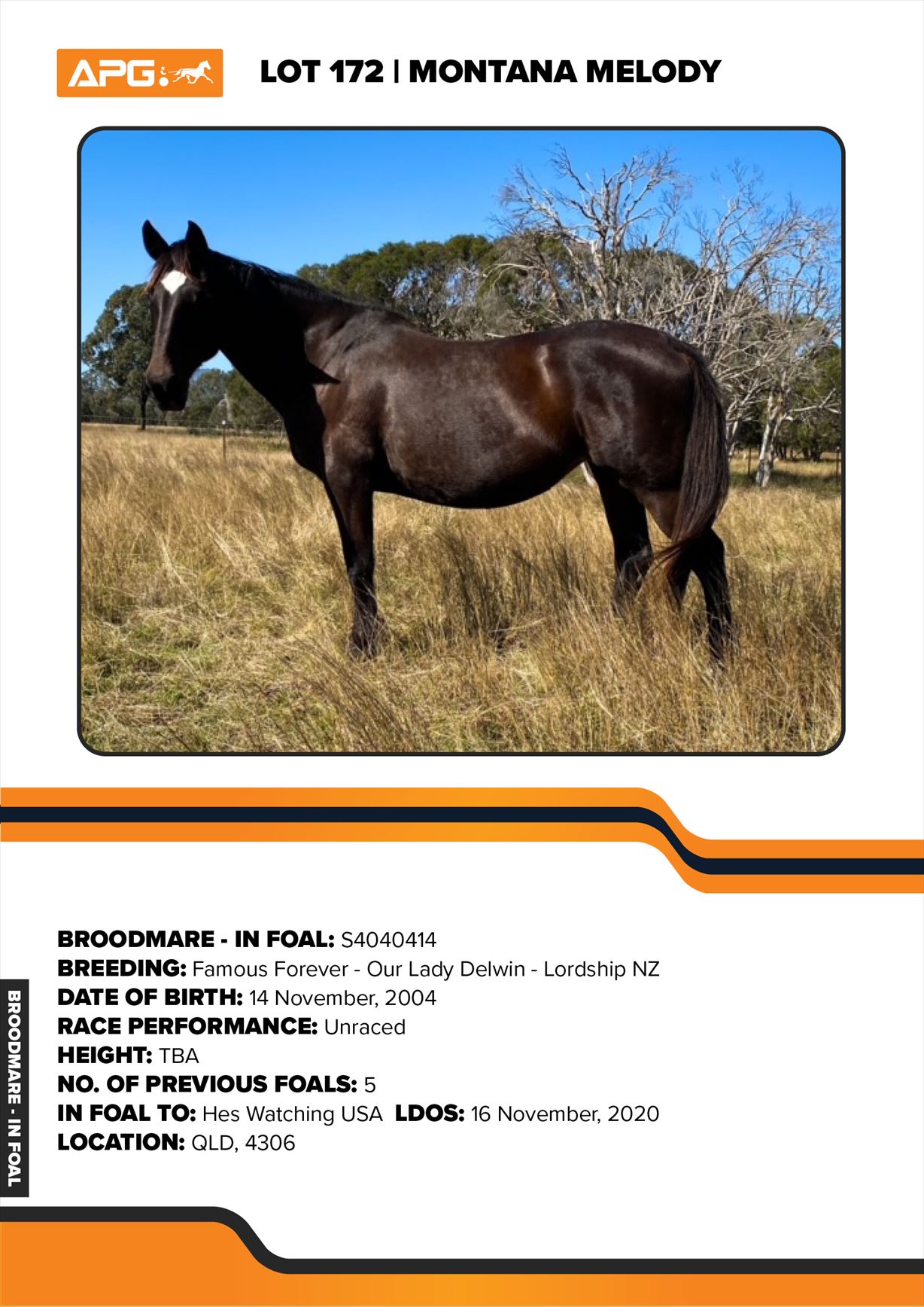| Mare(+) | Montana Melody | Famous Forever | Our Lady Delwin NZ | Eric Haack | QLD, 4306 | Matthew K Pfuhl | $6,500 |
