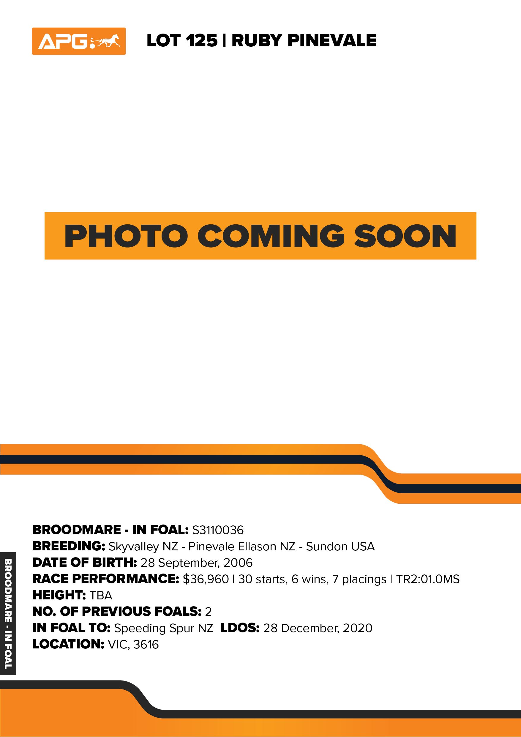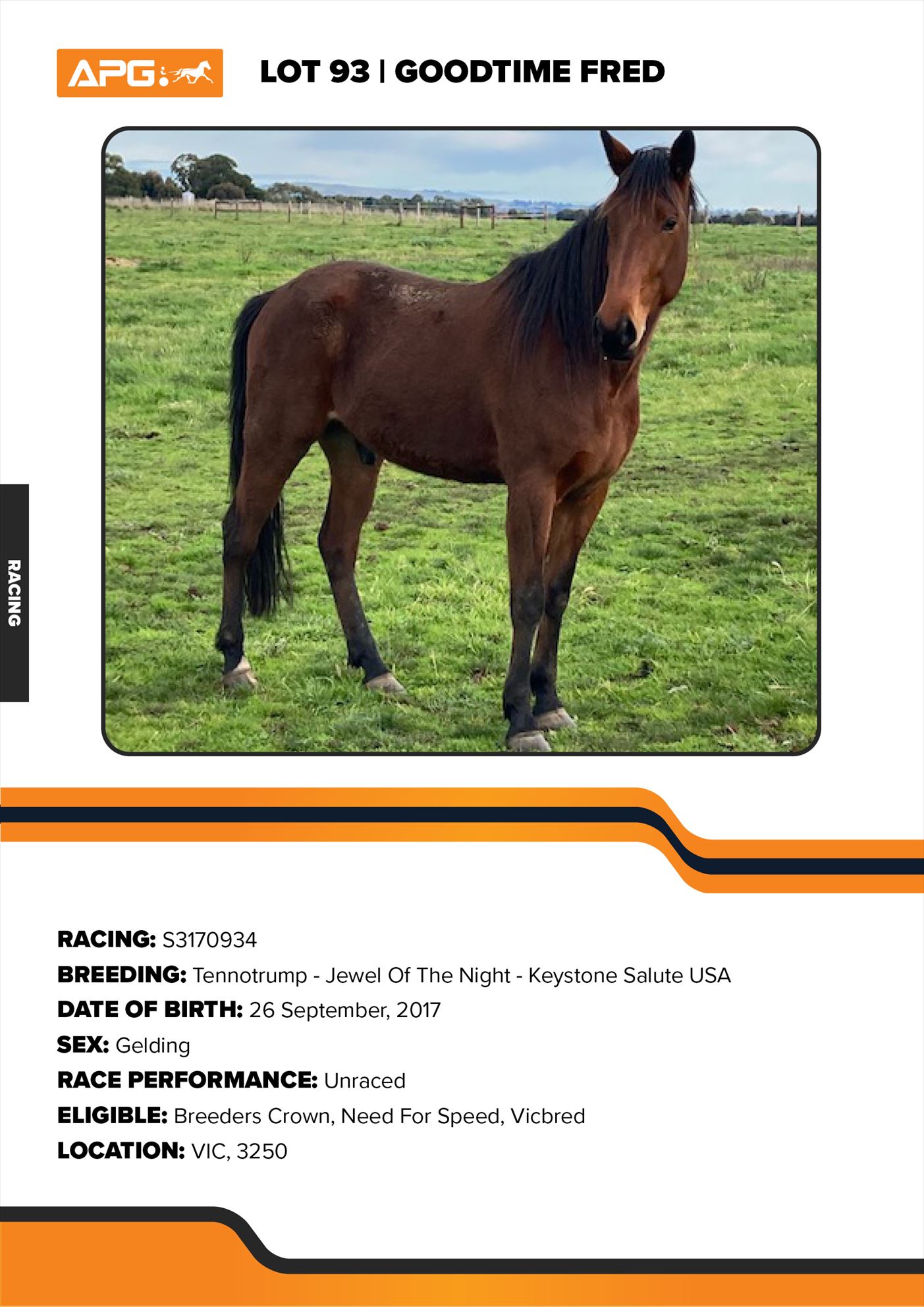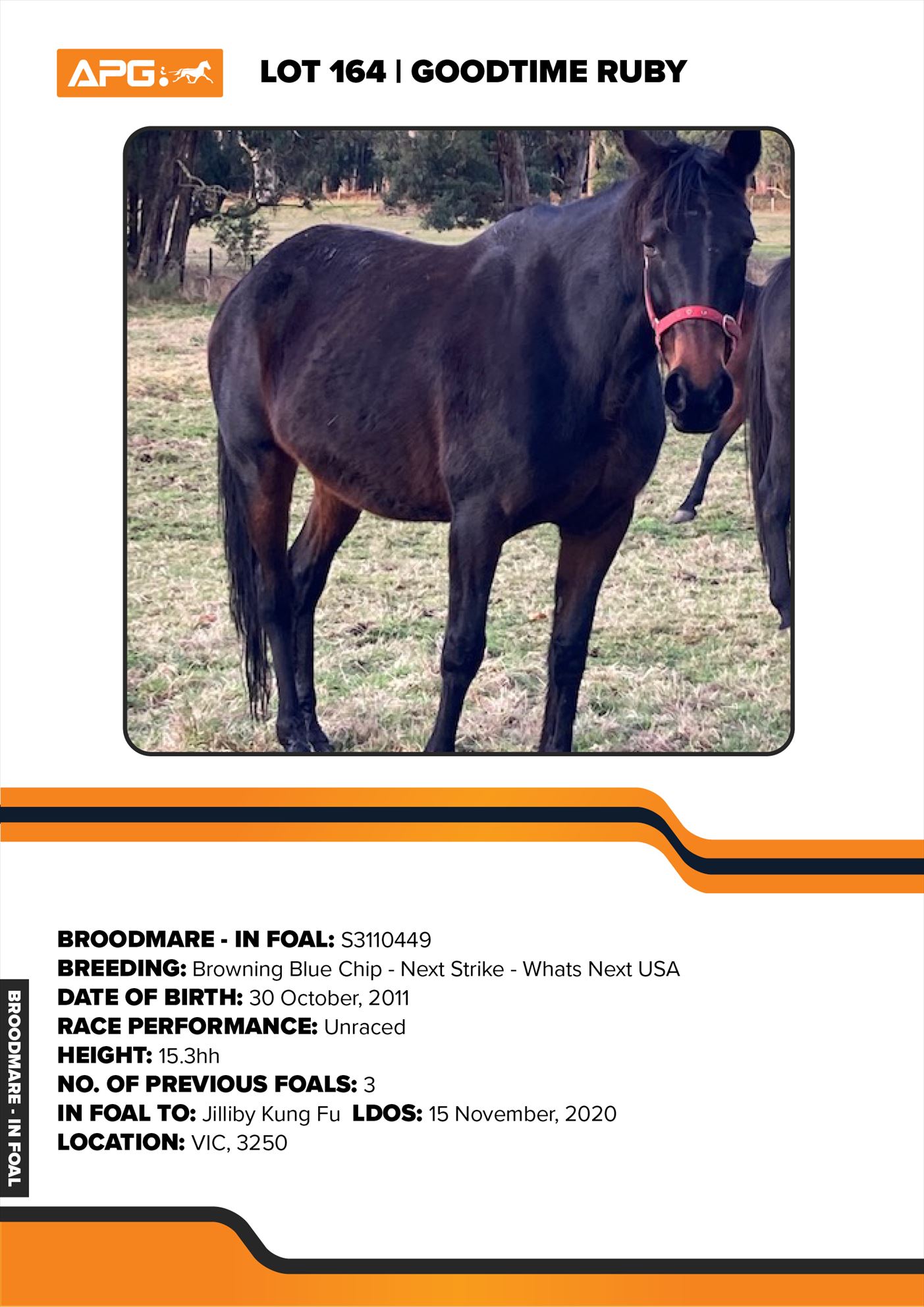 | Mare(+) | Goodtime Ruby | Browning Blue Chip USA | Next Strike | Goodtime Lodge | VIC, 3250 | Brett Lunghusen | $1,750 |