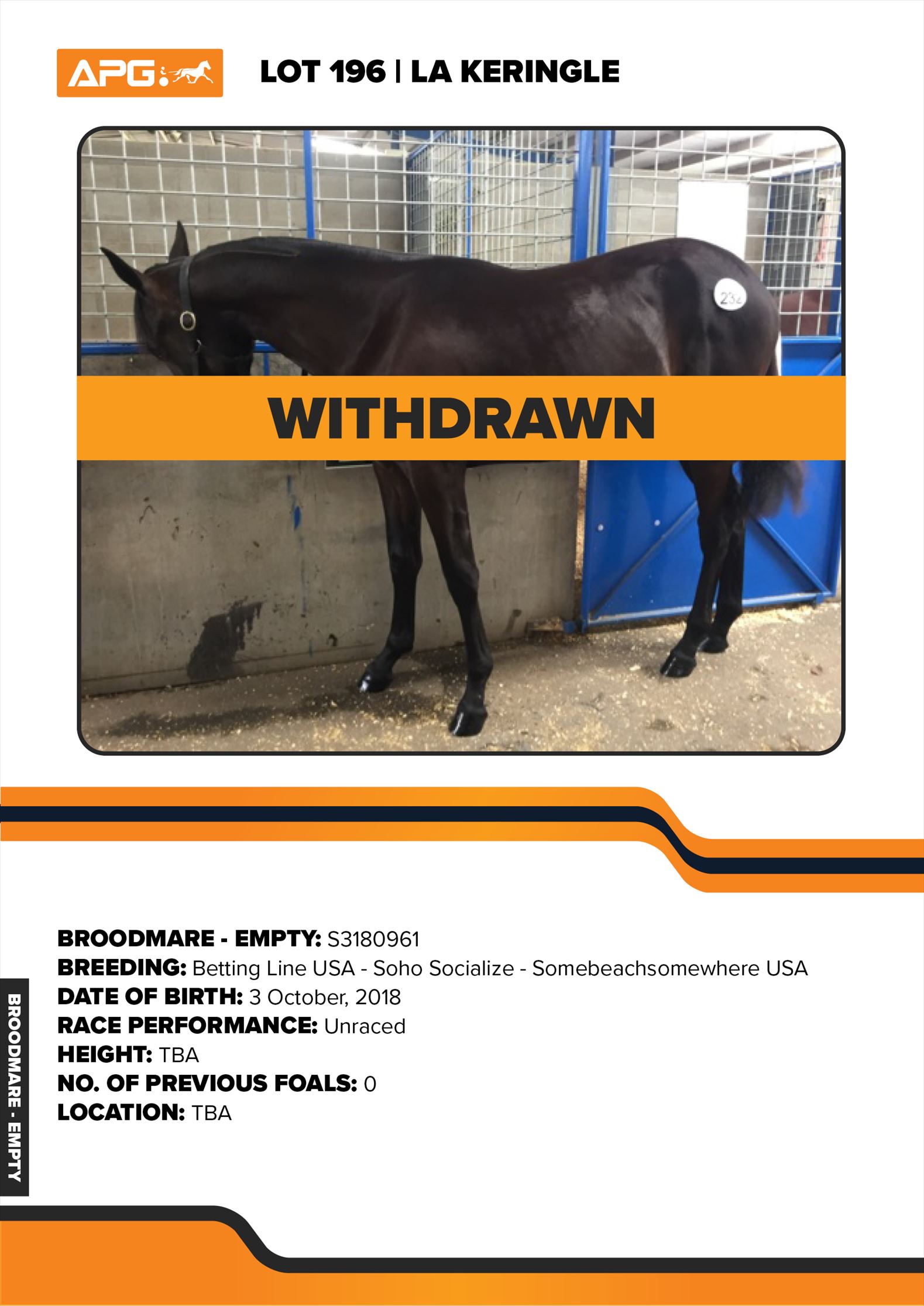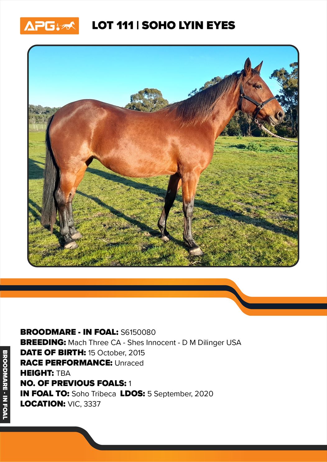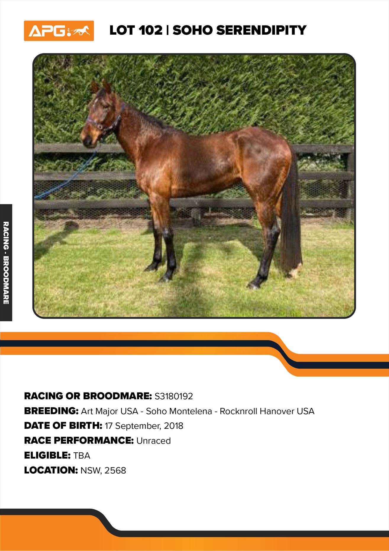 | Mare | Yuno My Brutha USA | Mystic Coal (US) | Queen Tut (US) | Trump Bloodstock Pty Ltd | QLD, 4340 |