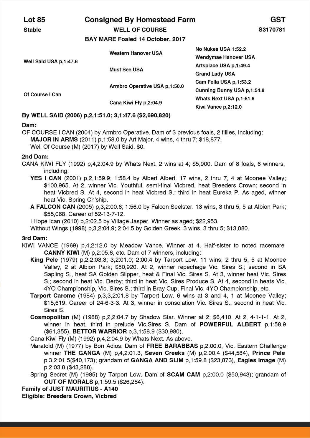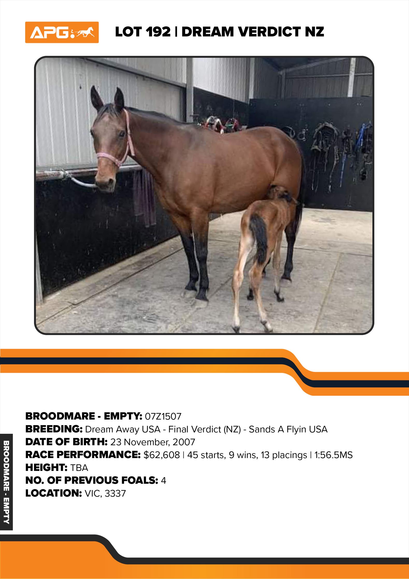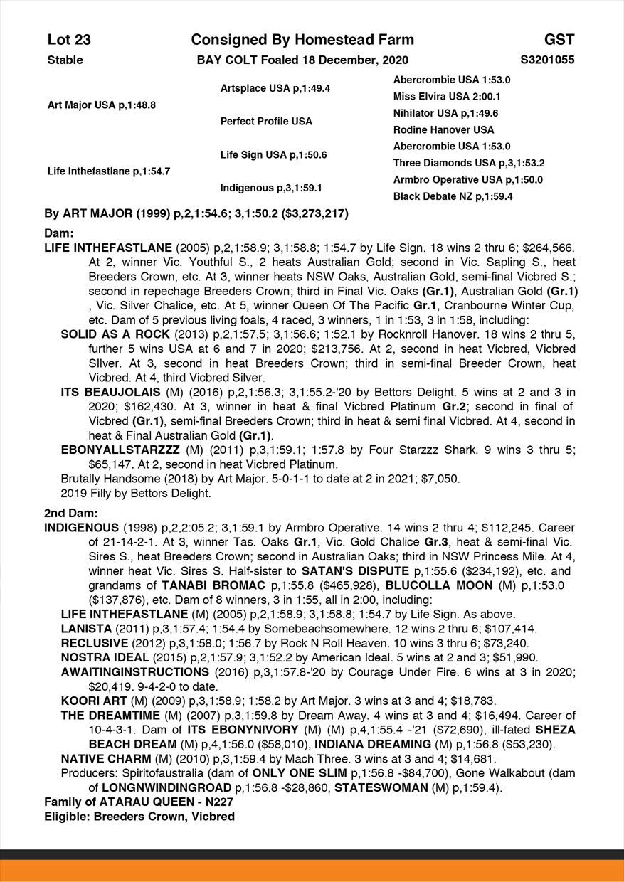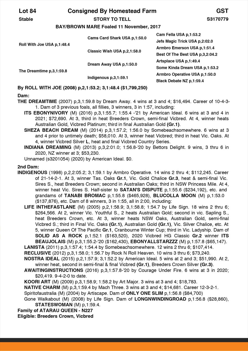 | Mare | Dream Verdict NZ | Dream Away USA | Final Verdict (NZ) | J Pace, V Pace, G Caon & R, Bugeja | VIC, 3337 |