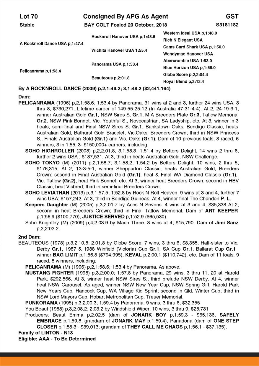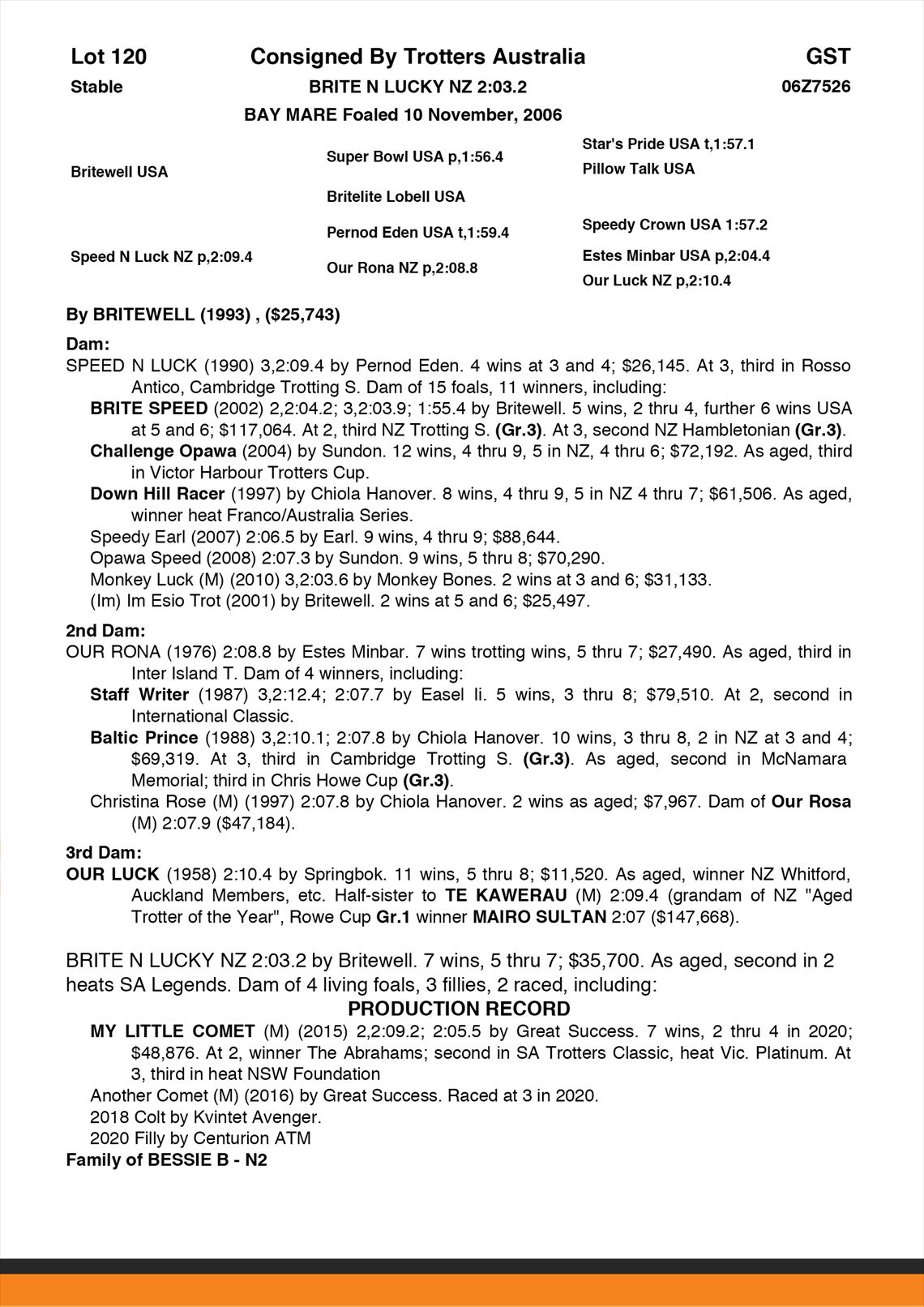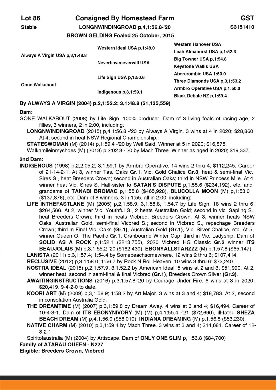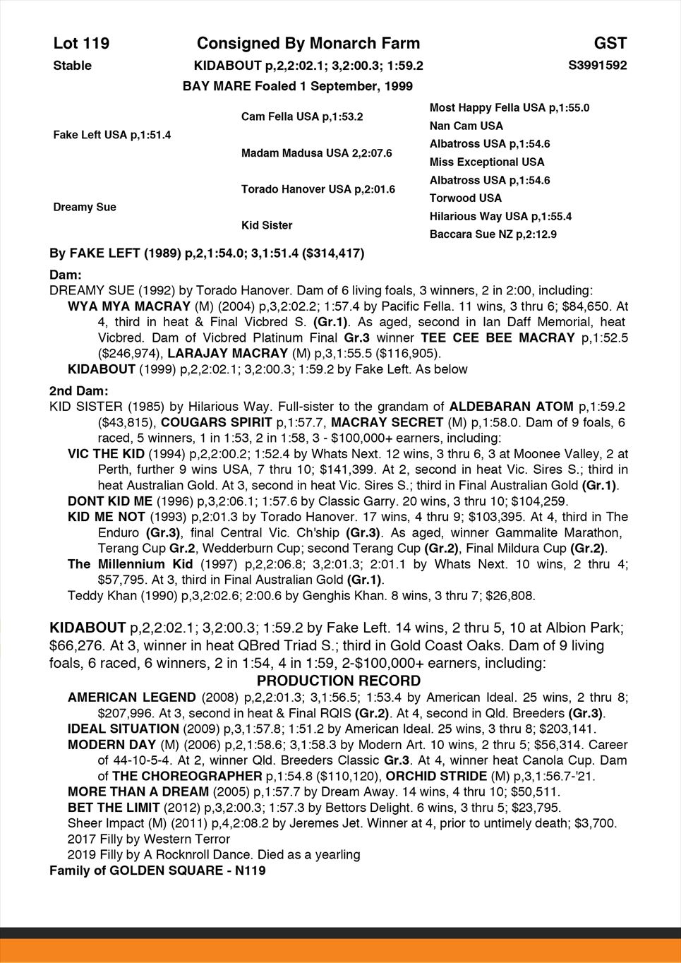 | Mare | Dream Verdict NZ | Dream Away USA | Final Verdict (NZ) | J Pace, V Pace, G Caon & R, Bugeja | VIC, 3337 |