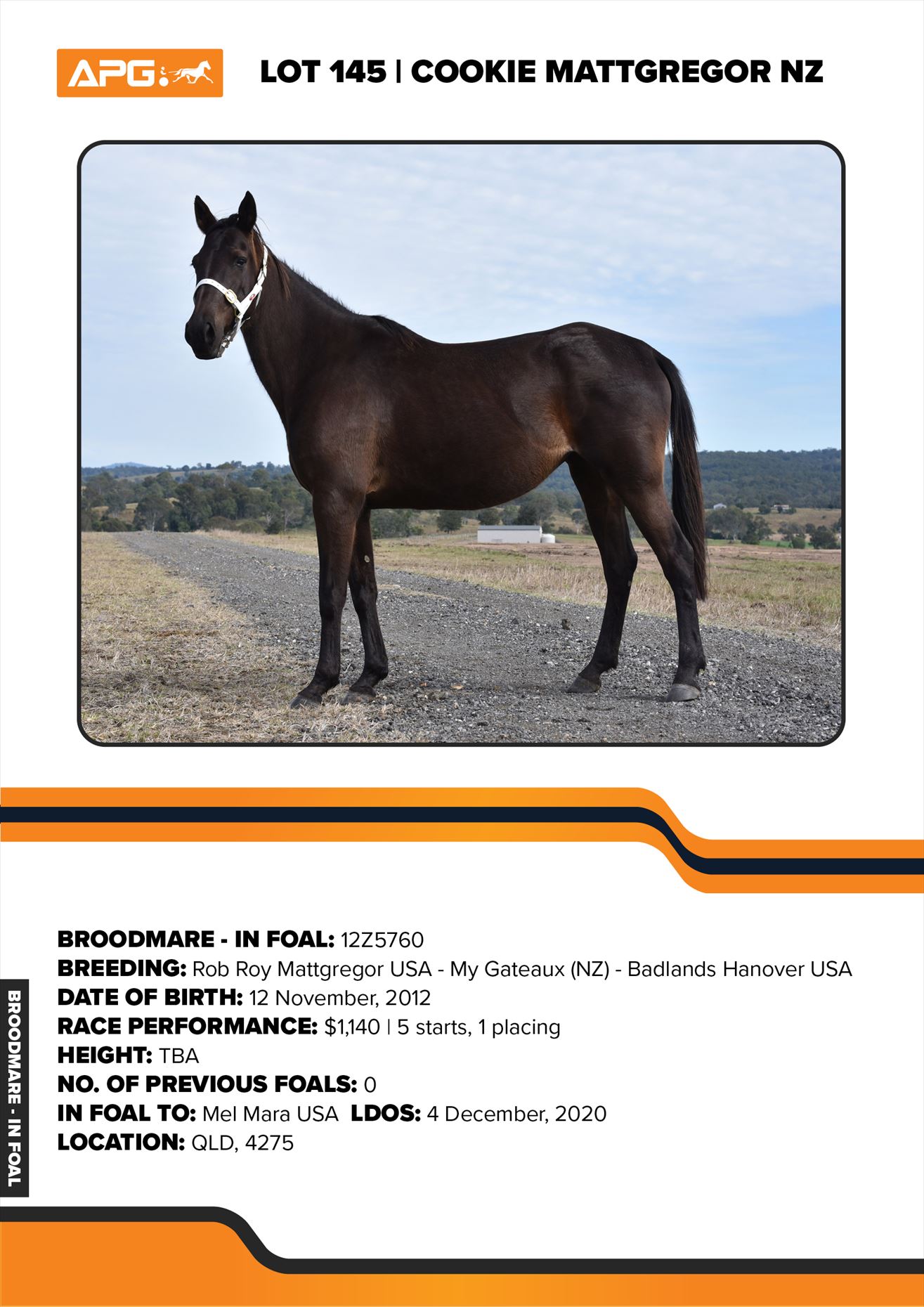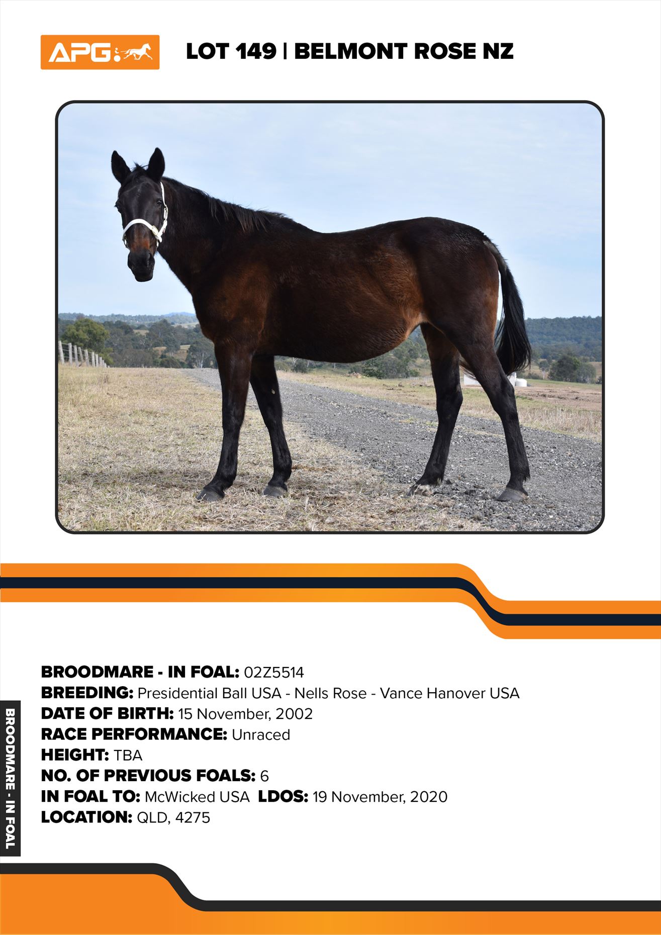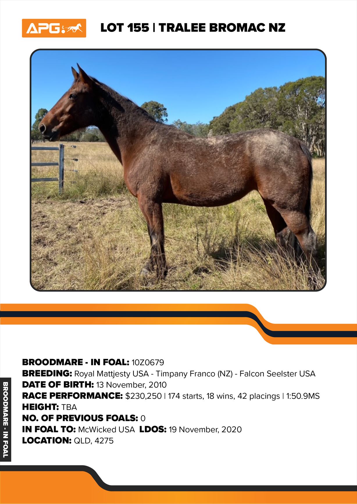 | Mare(+) | Tralee Bromac NZ | Royal Mattjesty USA | Timpany Franco (NZ) | Brisbane Pastoral Company Pty Ltd | QLD, 4275 | Jamie Durnberger-Smith | $12,000 |