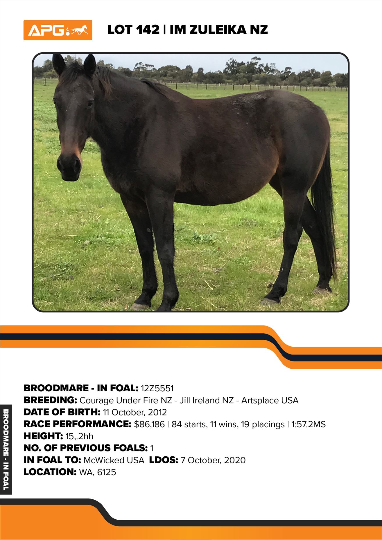 | Mare | Shes So Fair | Pacific Fella USA | Ever So Fair | I M Hedley & R M Hedley | WA, 6121 |