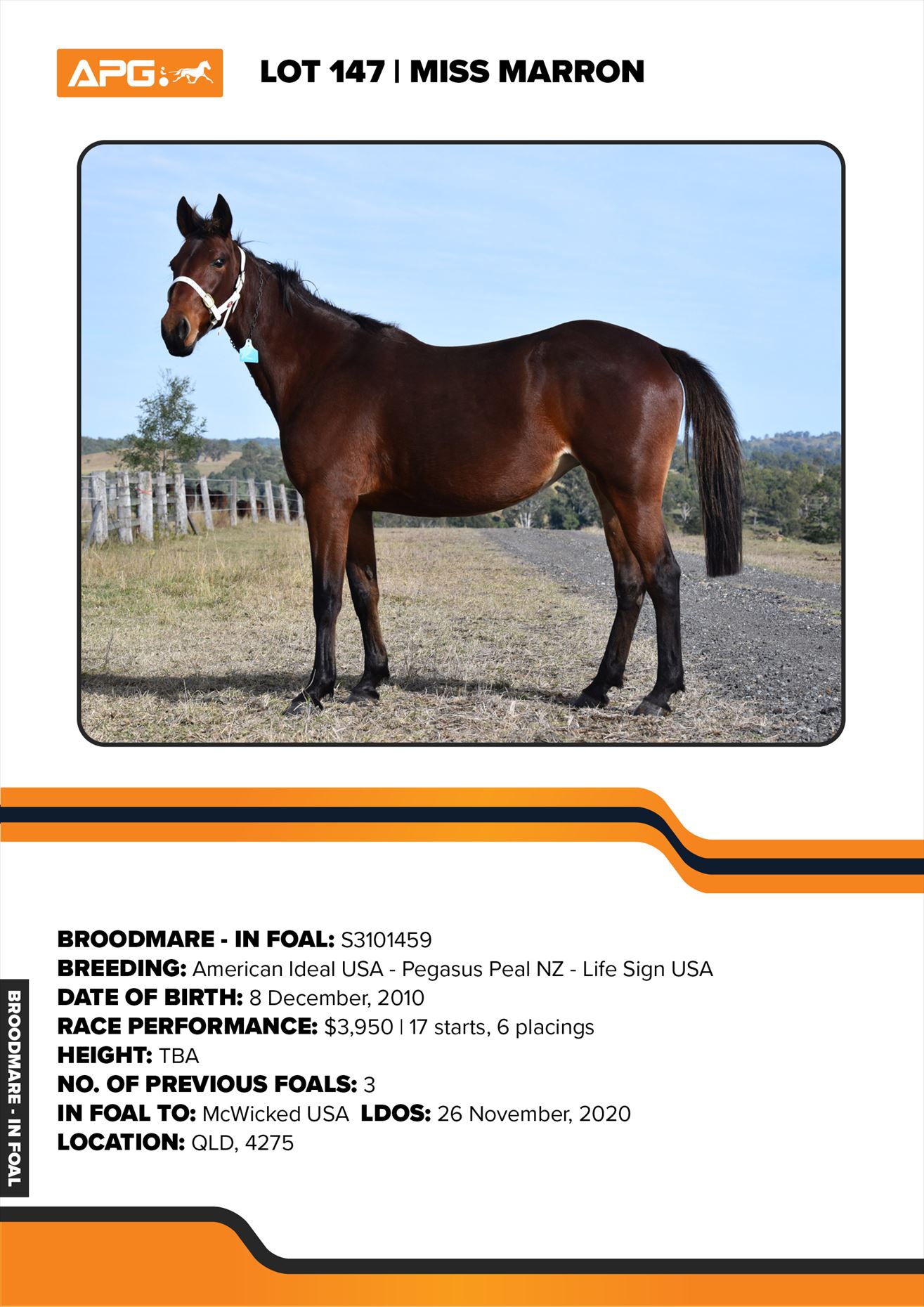 | Sportswriter USA | Miss Marron | Steven Clements | QLD, 4275 | DJW | $4,500 |