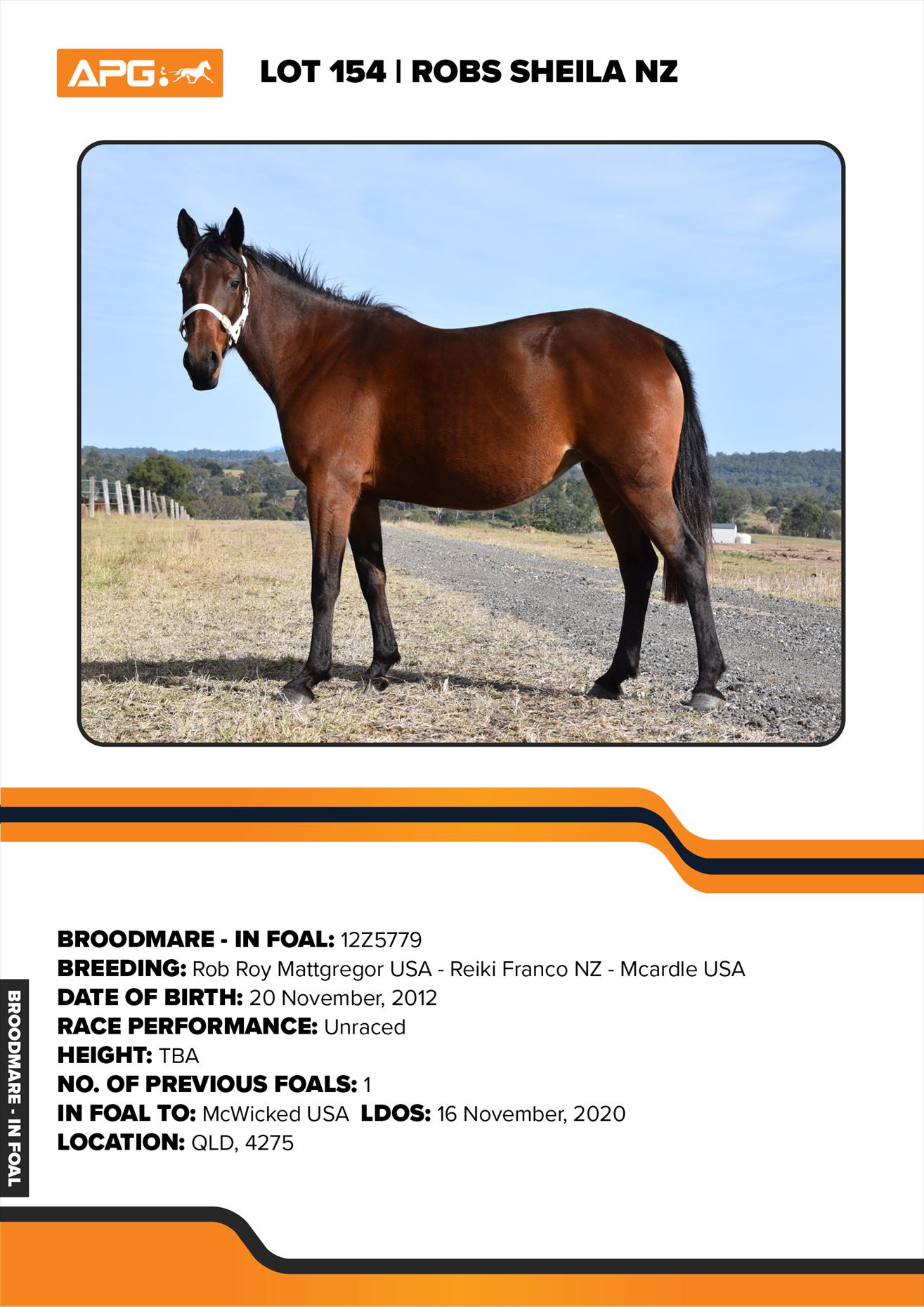 | Mare(+) | Robs Sheila NZ | Rob Roy Mattgregor USA | Reiki Franco NZ | Brisbane Pastoral Company Pty Ltd | QLD, 4275 | Rob Essex | $6,000 |