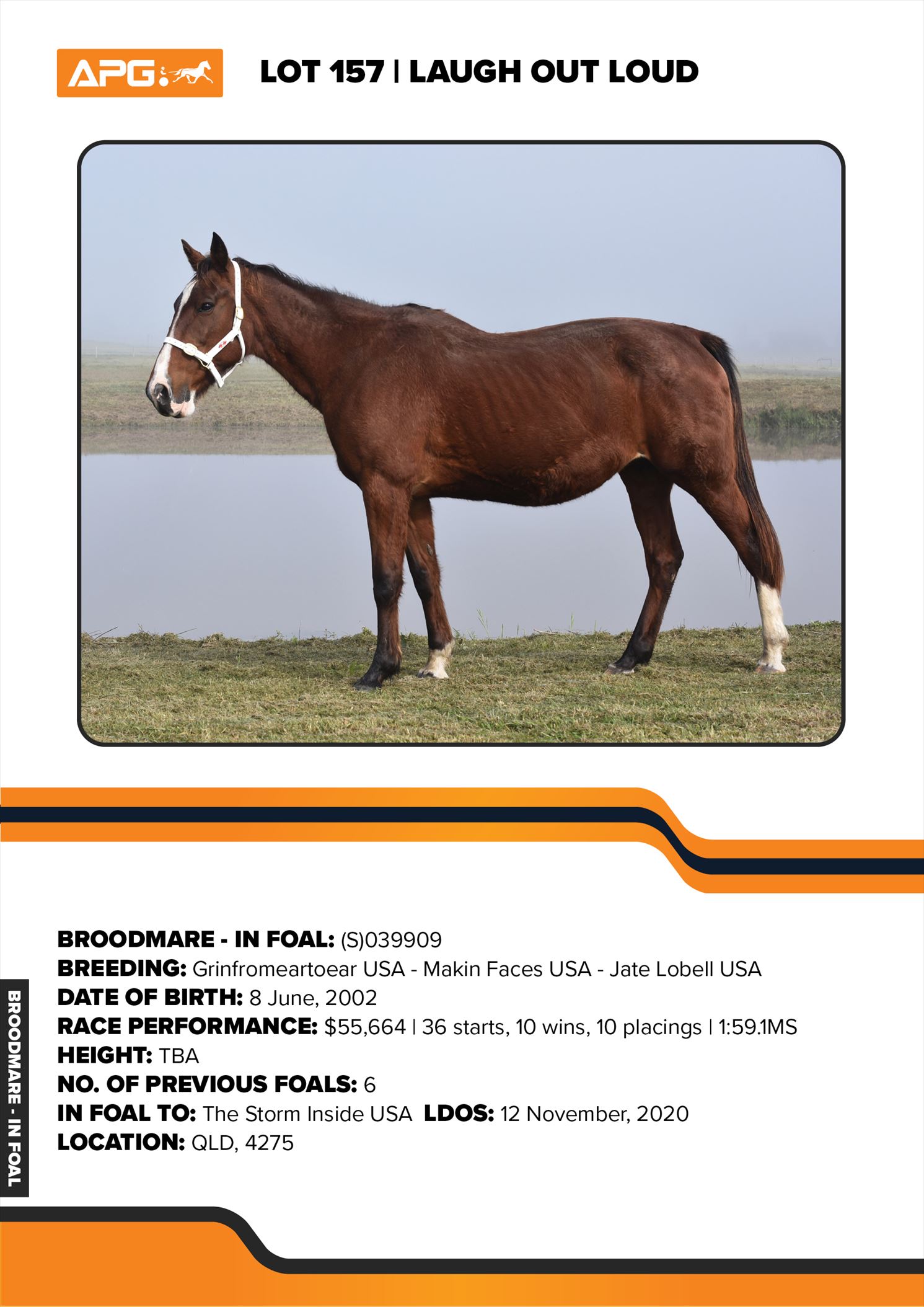 | Mare(+) | Laugh Out Loud | Grinfromeartoear USA | Makin Faces USA | Traxion Management Services | QLD, 4275 | APG As Agent | $4,000 |