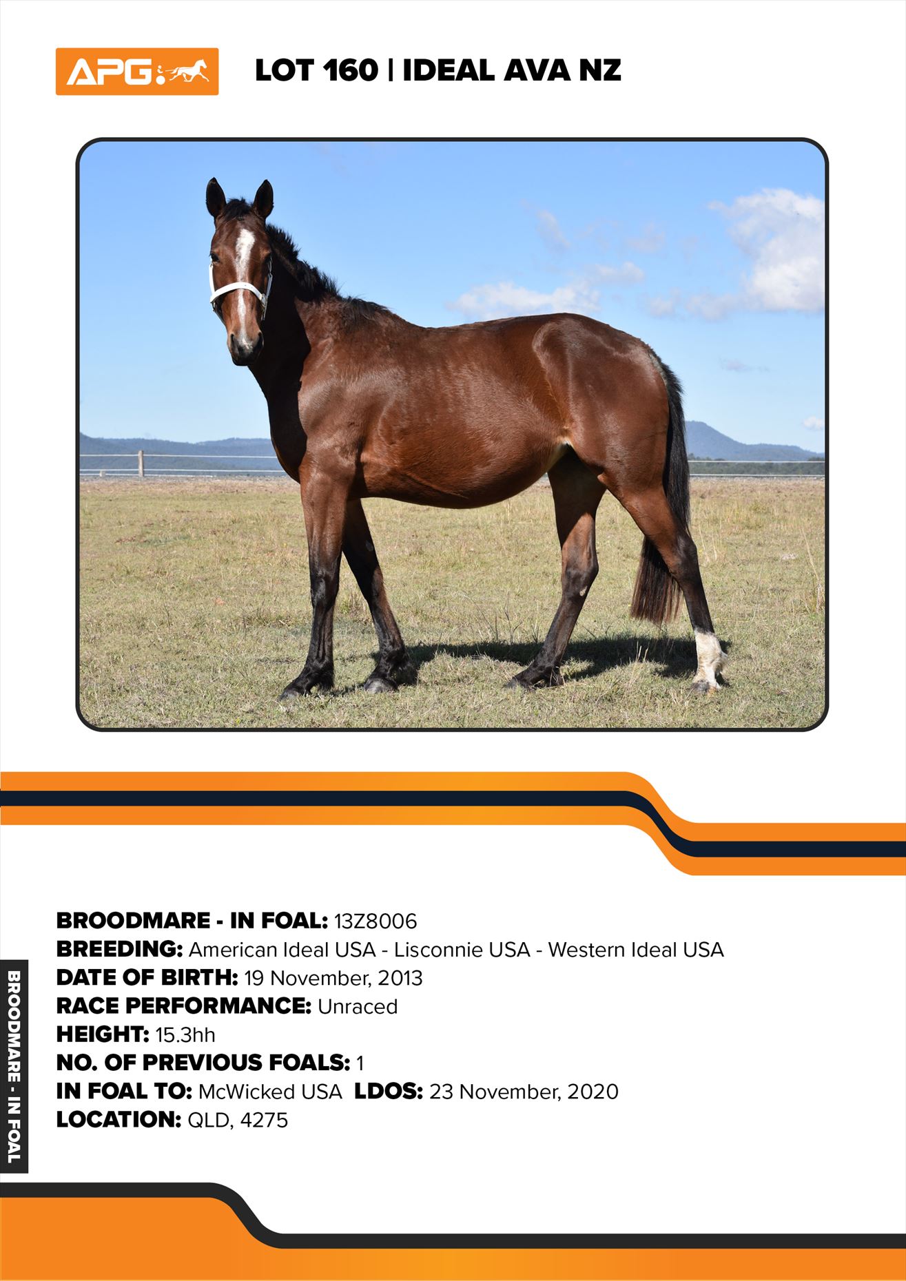 | Mare(+) | Ideal Ava NZ | American Ideal USA | Lisconnie USA | Kate Baring | QLD, 4275 |