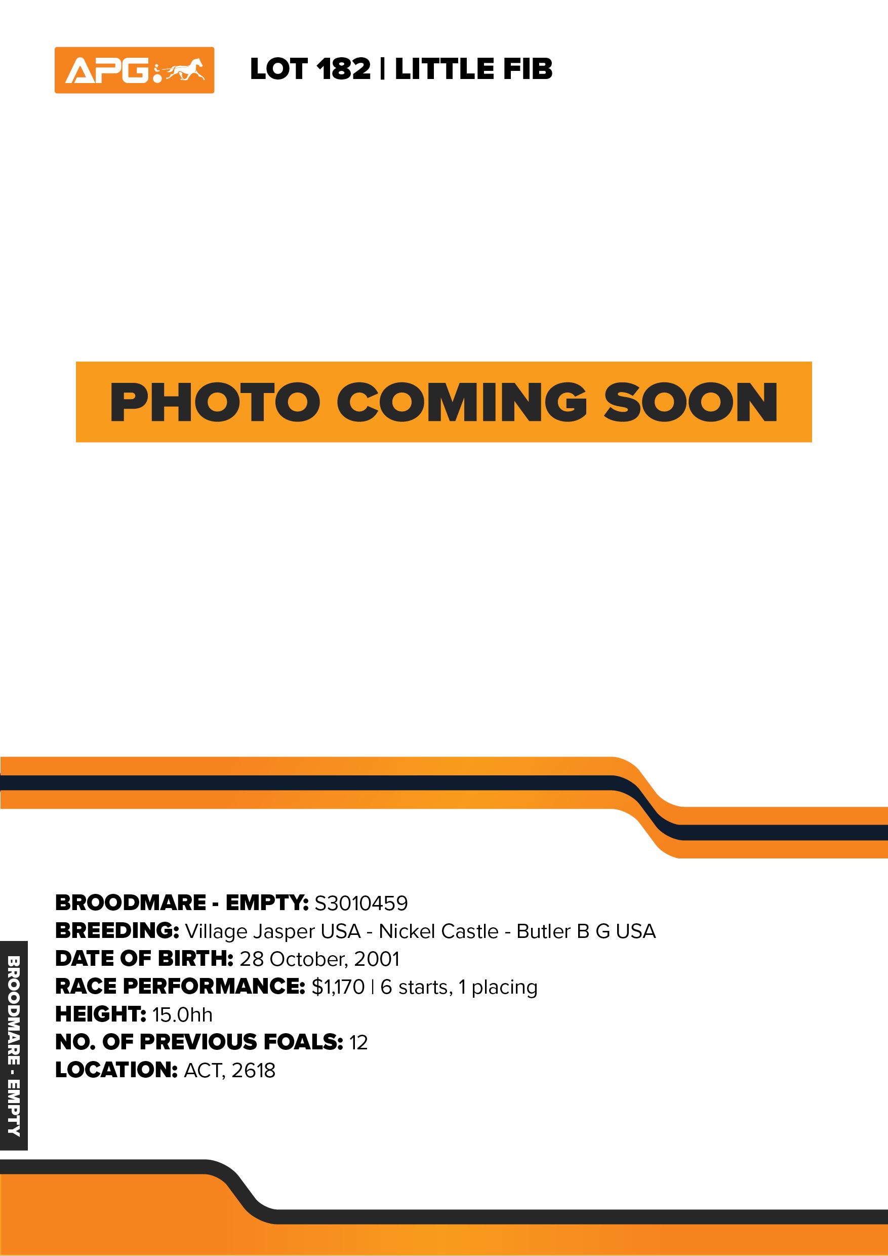 | Mare | Little Fib | Village Jasper USA | Nickel Castle | Donald Spedding & Maryann Harris | ACT, 2618 | Travis Jude | $1,250 |