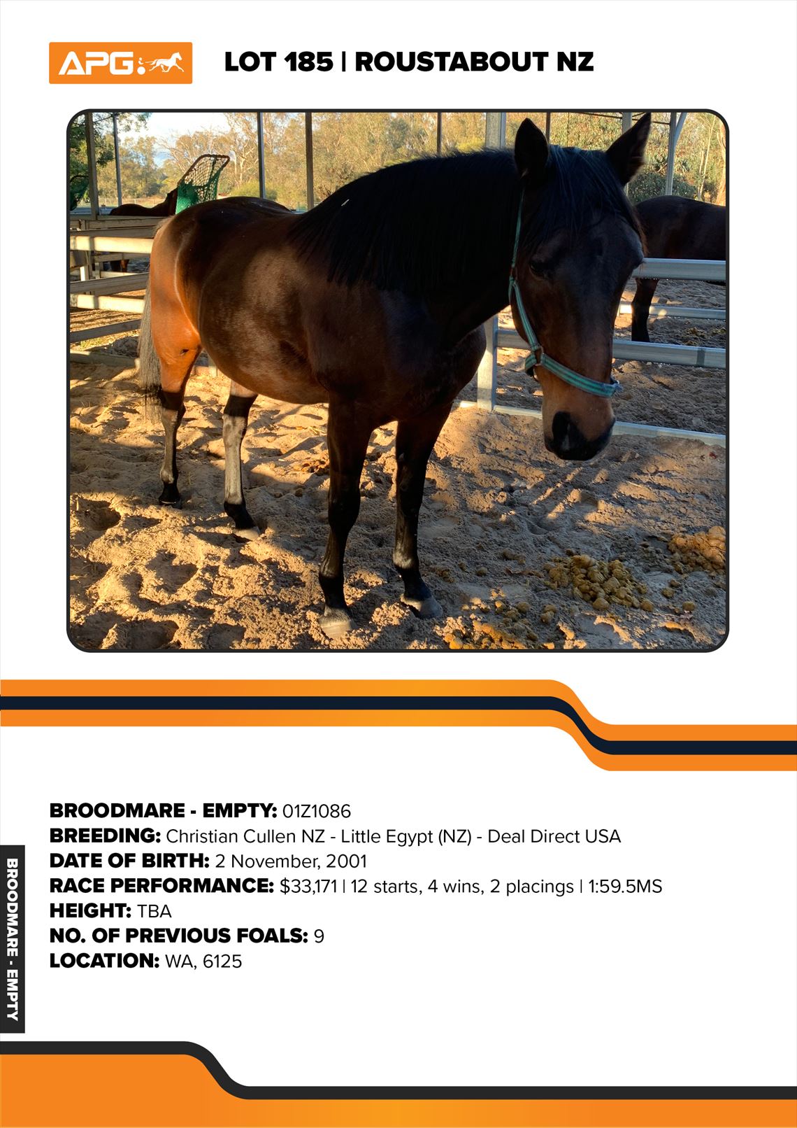| Mare | Roustabout NZ | Christian Cullen NZ | Little Egypt (NZ) | Hollywood Park | WA, 6125 |