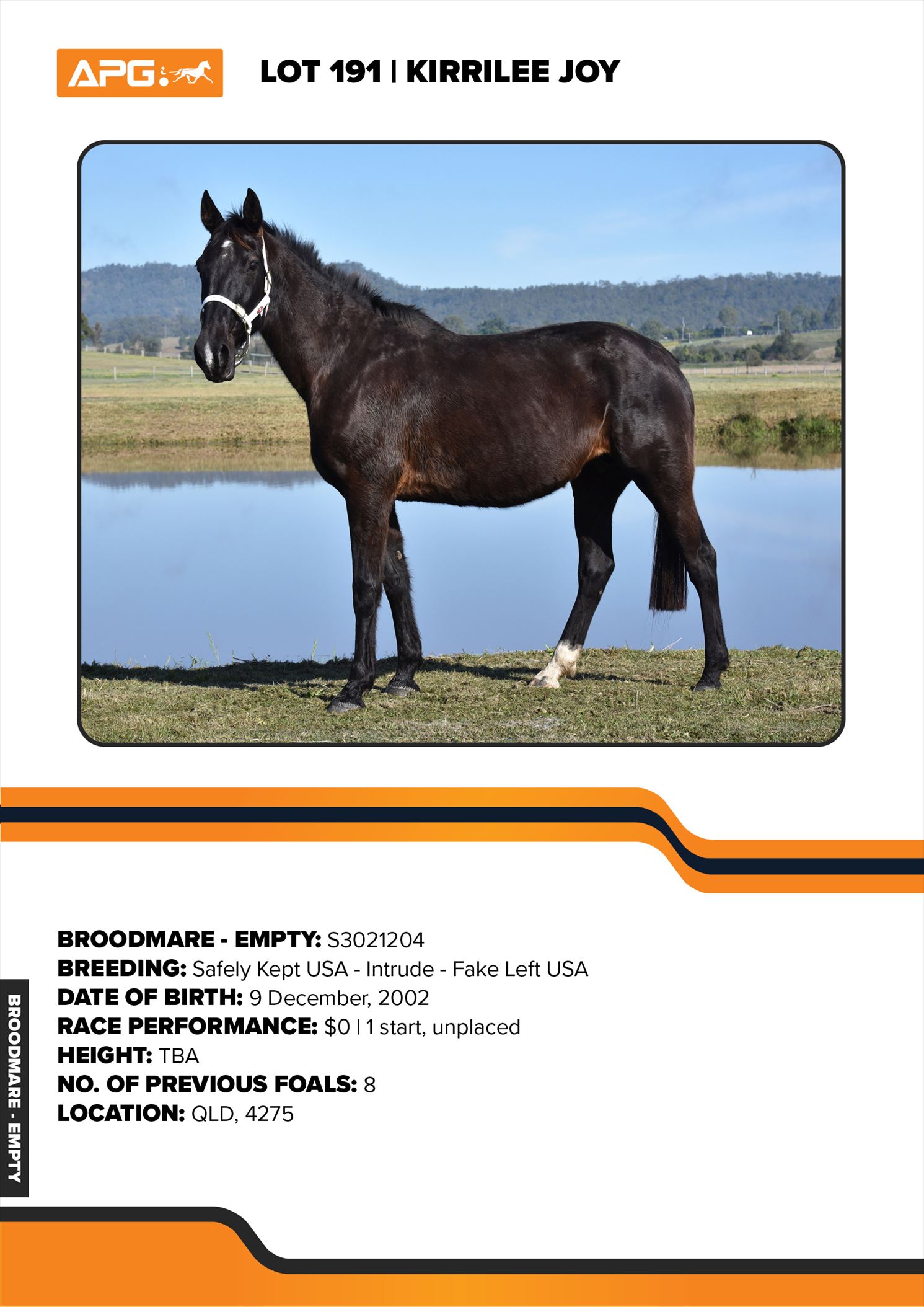 | Mare | Kirrilee Joy | Safely Kept USA | Intrude | Traxion Management Services | QLD, 4275 | | |