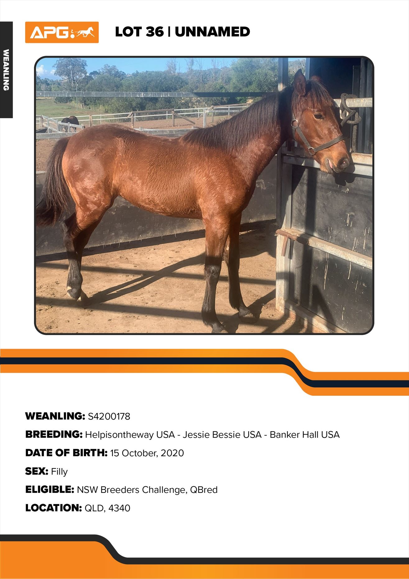 | Helpisontheway (US) | Jessie Bessie USA | Trump Bloodstock Pty Ltd | QLD, 4340 | Julian Norrish | $4,000 |
