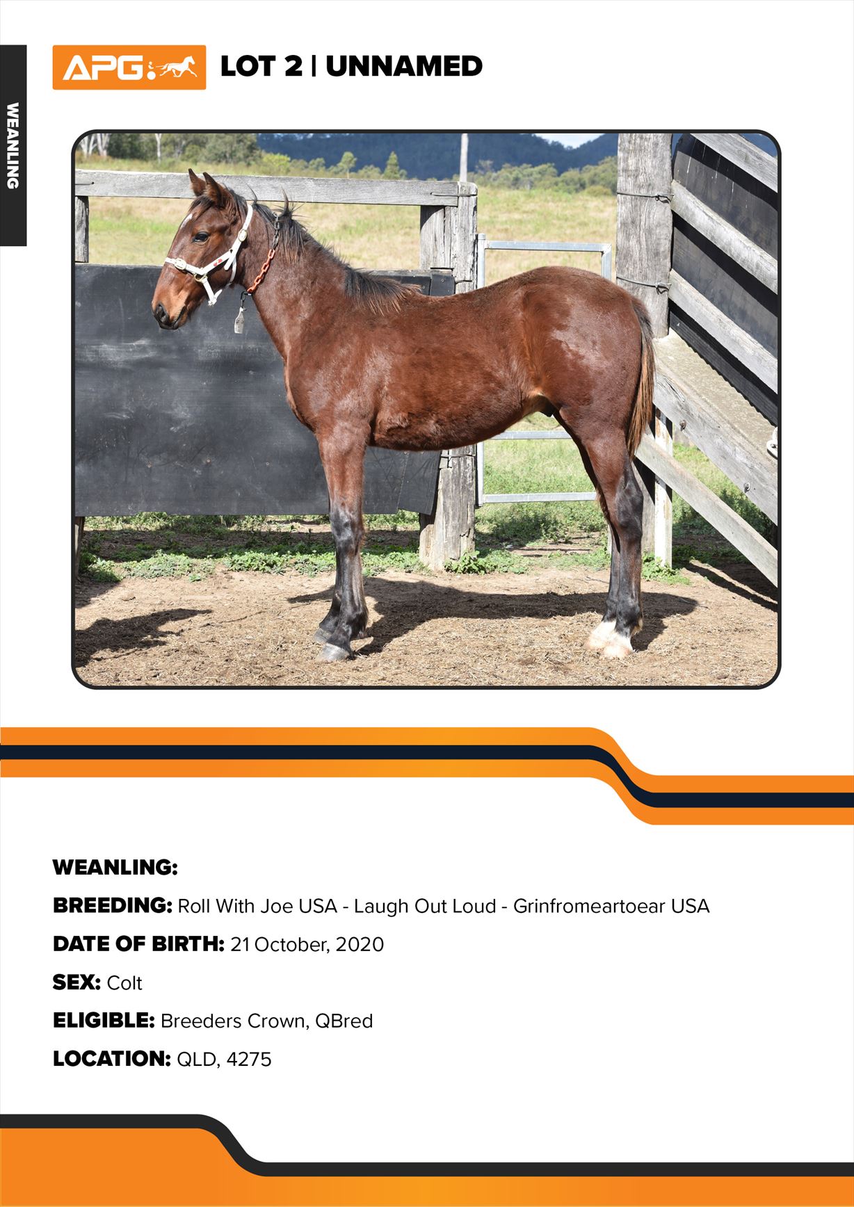 | Colt | Big Bozz | Roll With Joe USA | Laugh Out Loud | Traxion Management Services | QLD, 4275 | APG As Agent | $13,200 |