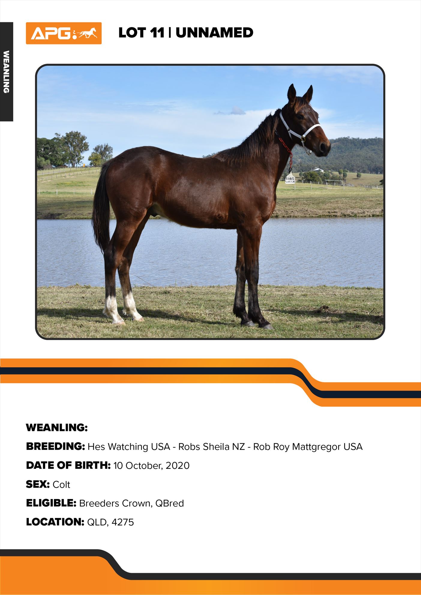 | Hes Watching USA | Robs Sheila | Brisbane Pastoral Company Pty Ltd | QLD, 4275 | Craig Whiteoak | $15,000 |