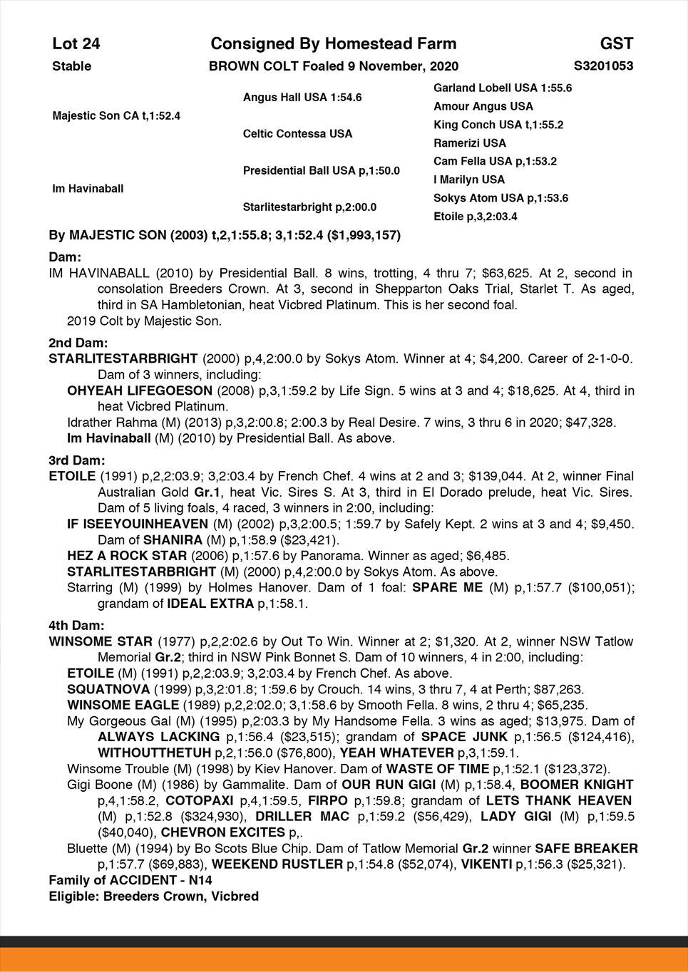 | Colt | Majestic Party Boy | Majestic Son CA | Im Havinaball | Homestead Farms | VIC, 3754 |