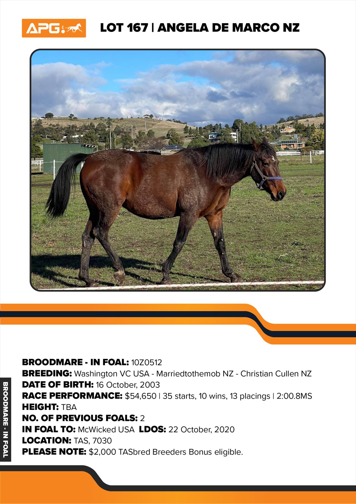 | Mare(+) | Angela De Marco NZ | Washington Vc USA | Marriedtothemob NZ | Jamie Cockshutt & Barry Cooper | TAS, 7030 |